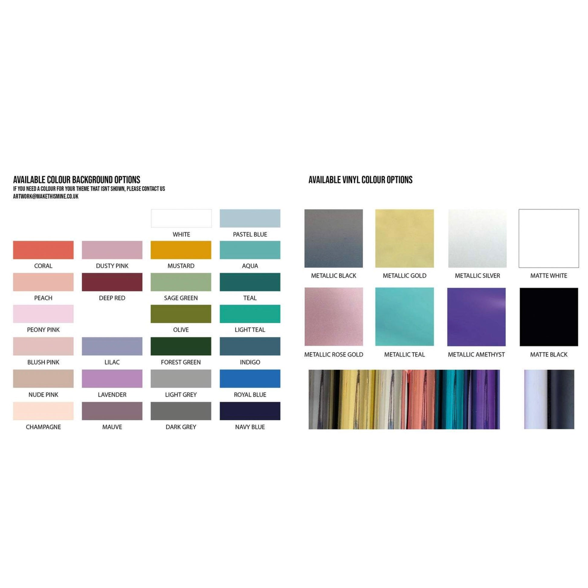 Choose your background and vinyl colour to fit your wedding theme perfectly.