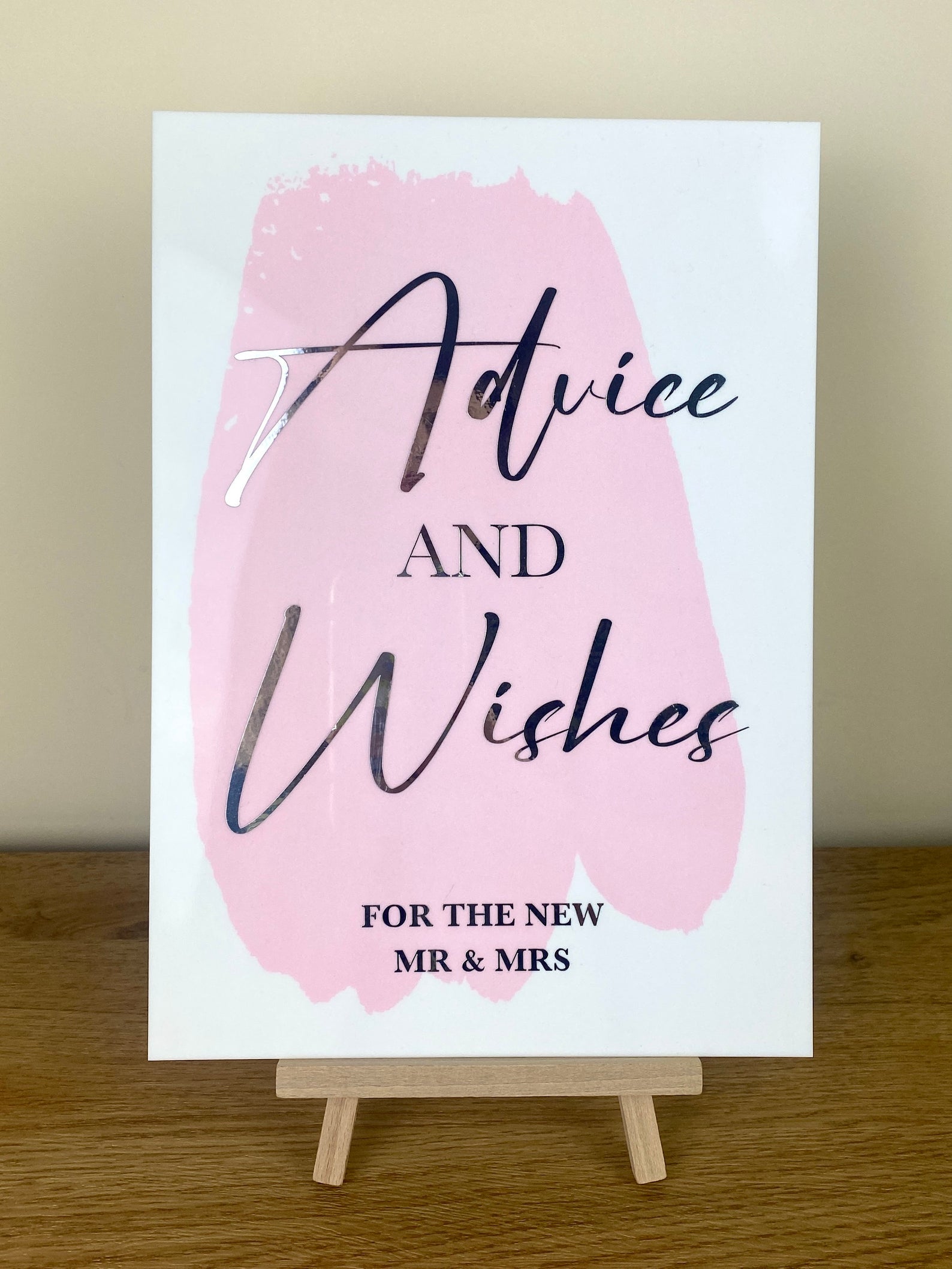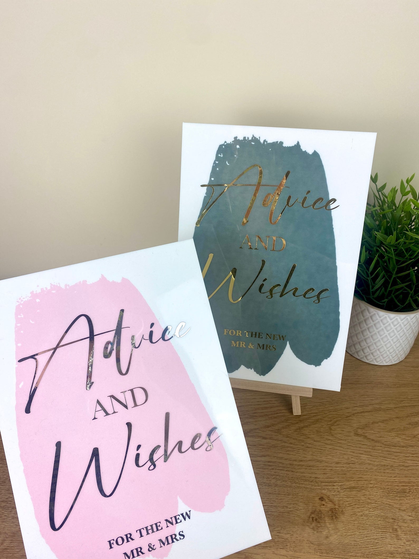 'Advice and Wishes - for the new Mr and Mrs' - Perspex Wedding Sign