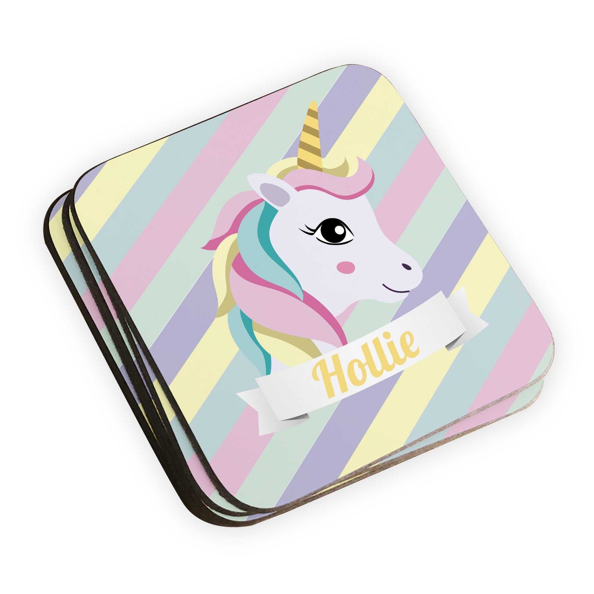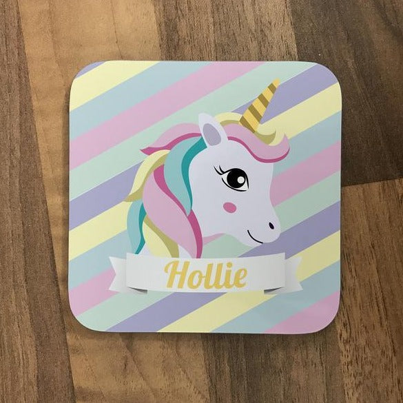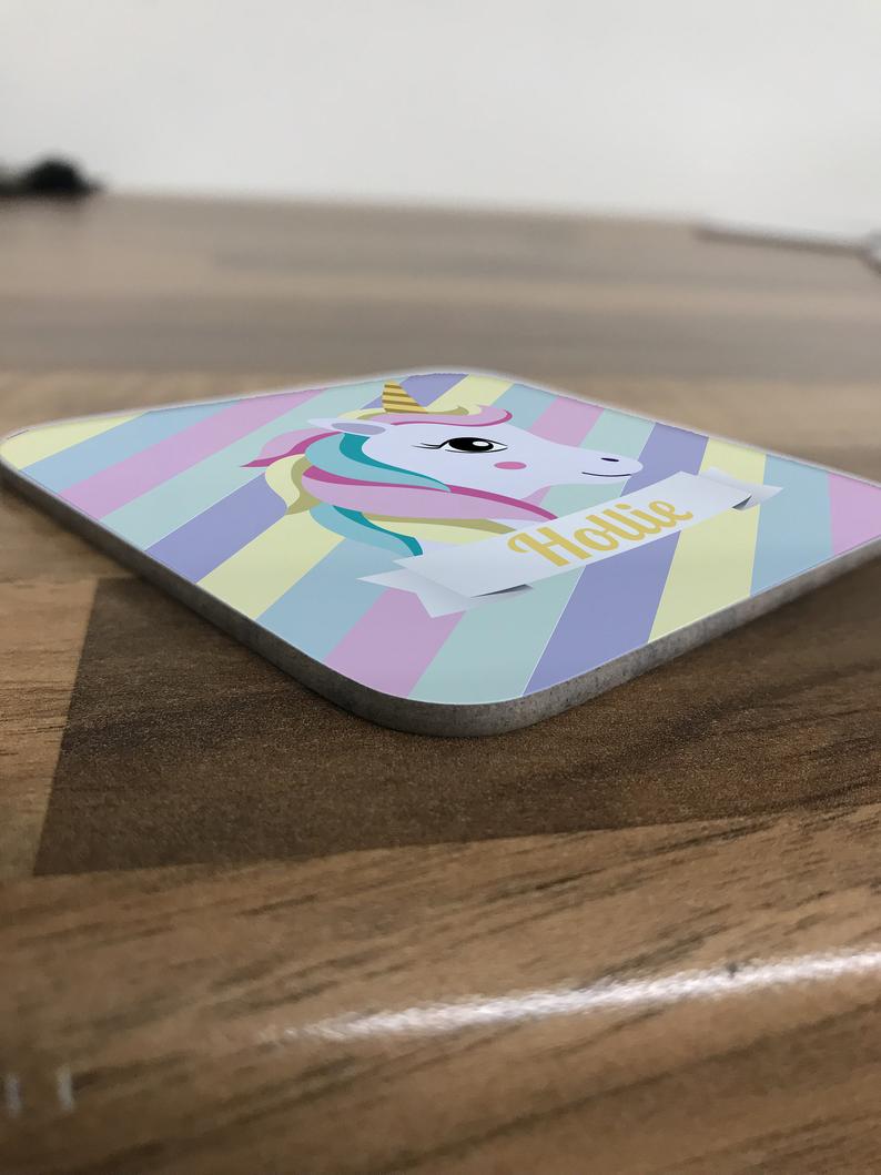 Fantastic colourful unicorn design. Our personalised unicorn coasters make excellent fun gifts ideal for family and friends.