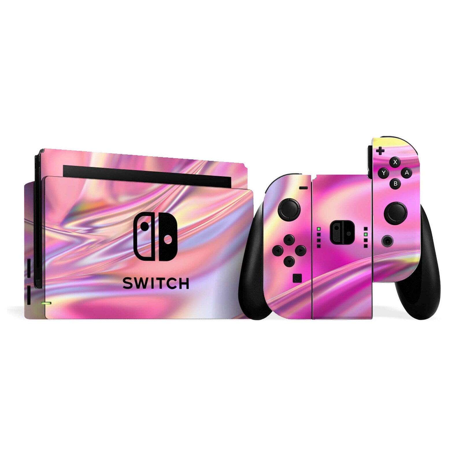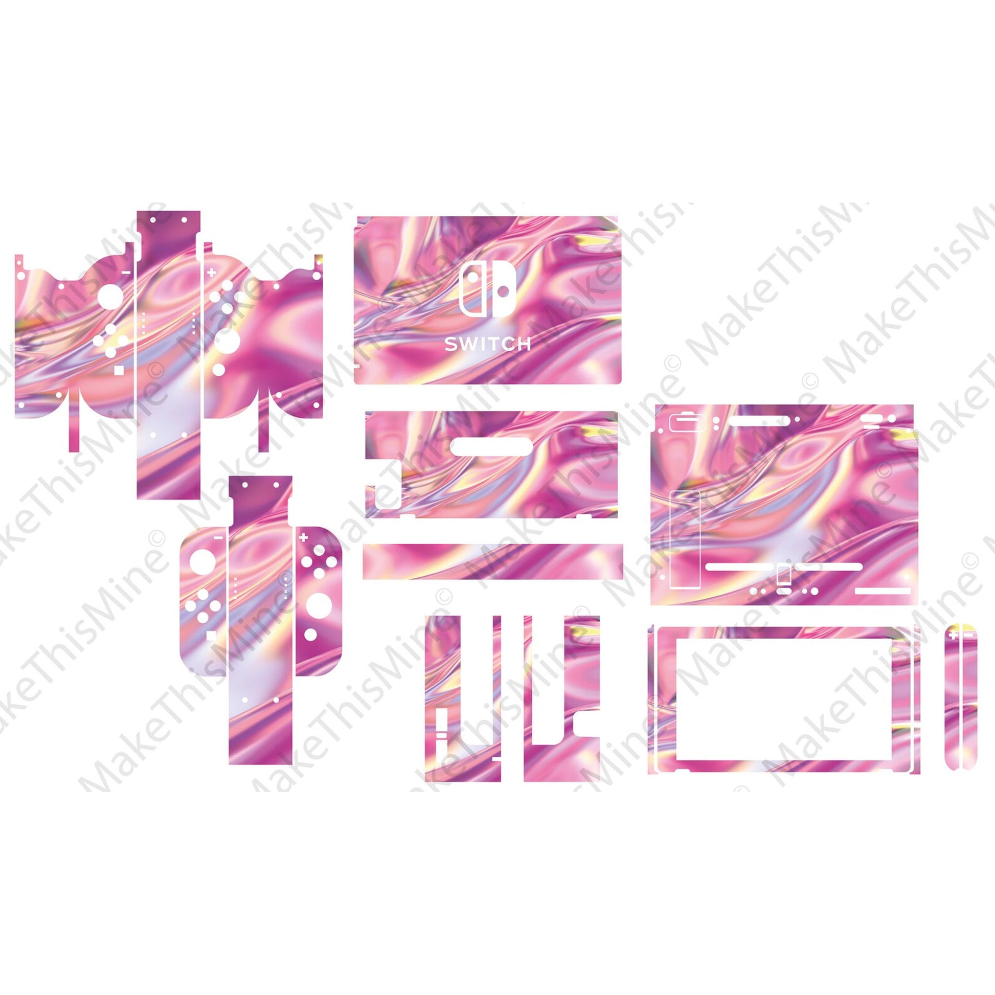 Nintendo Switch Skin, pink neon swirl sticker design on vinyl.