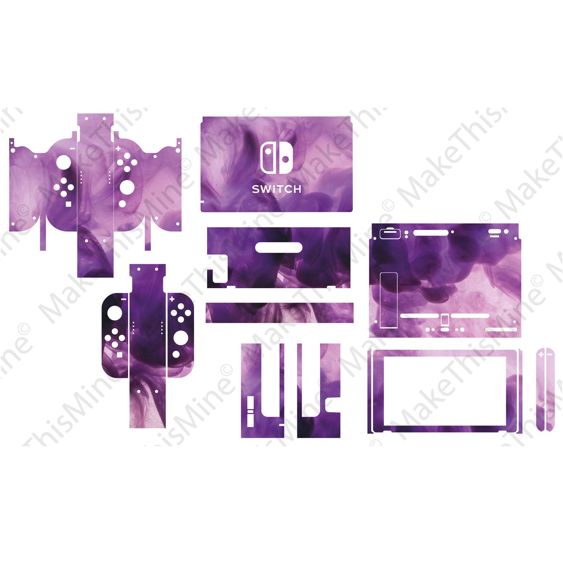 Nintendo Switch Skin, purple smoke sticker design on vinyl.