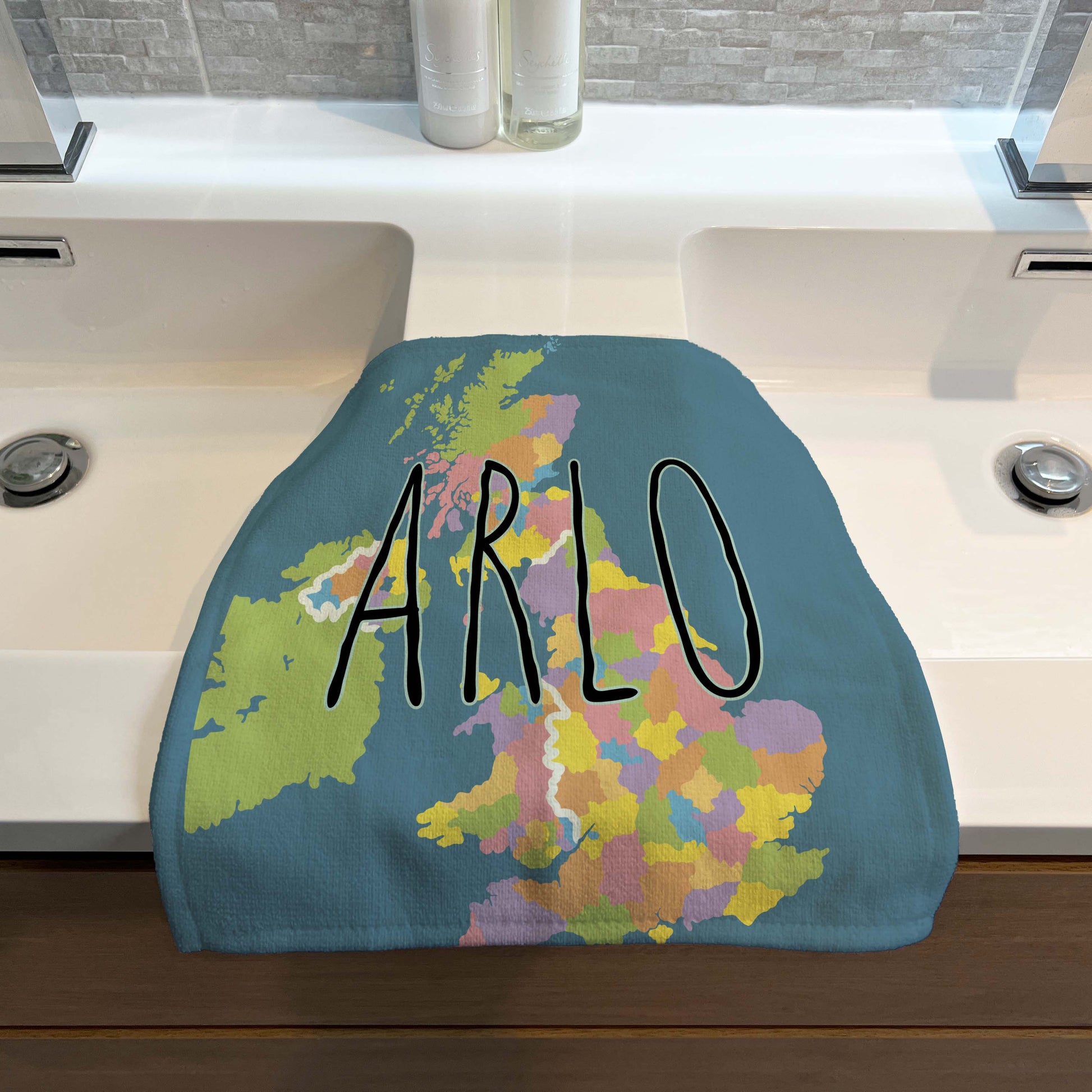 Colourful UK Map design! Bright white face cloth with a microfibre front and a 100% cotton back. Perfect for bath time and beach days!