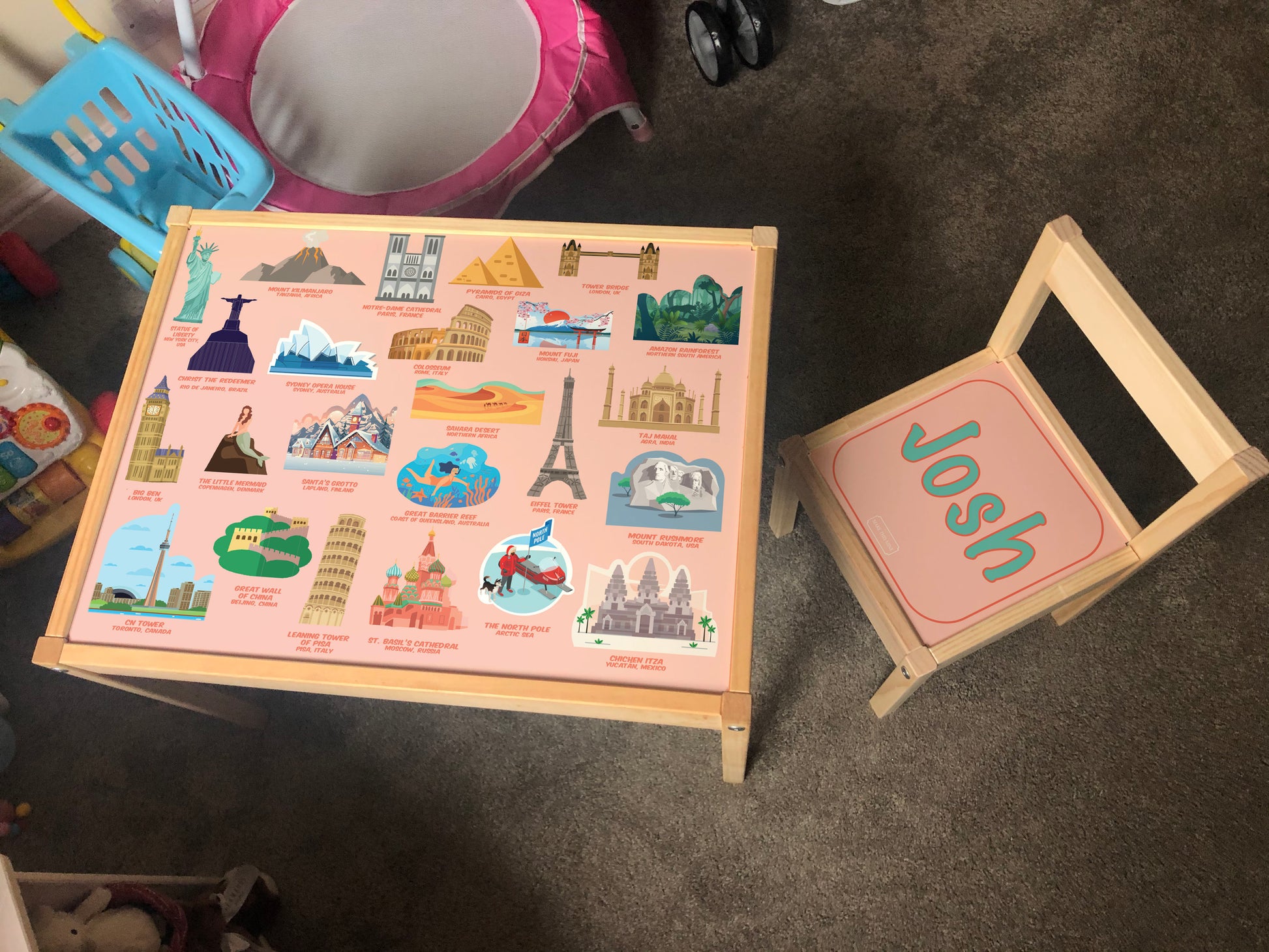 Personalised Children's Table and 1 Chair Printed World Landmarks Design