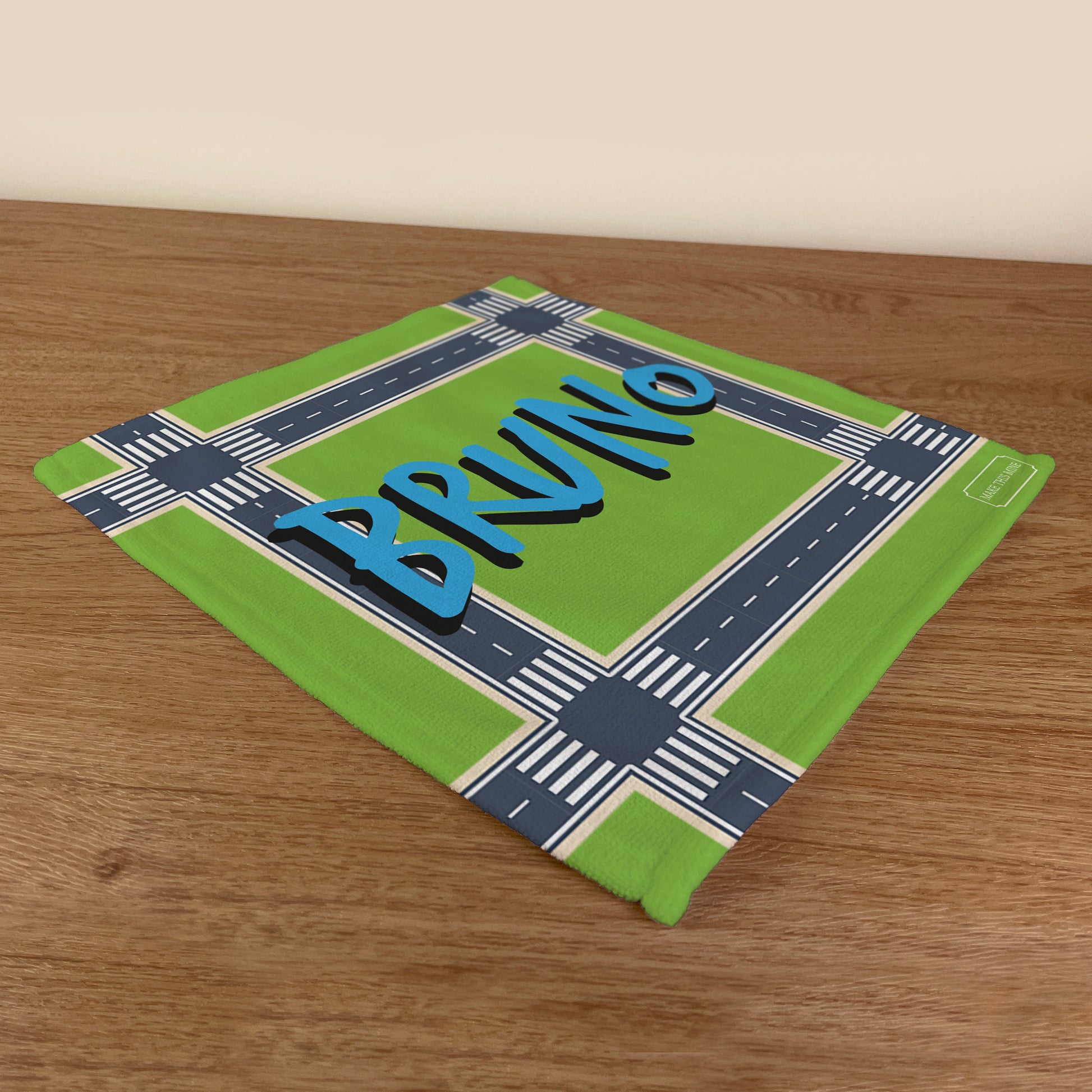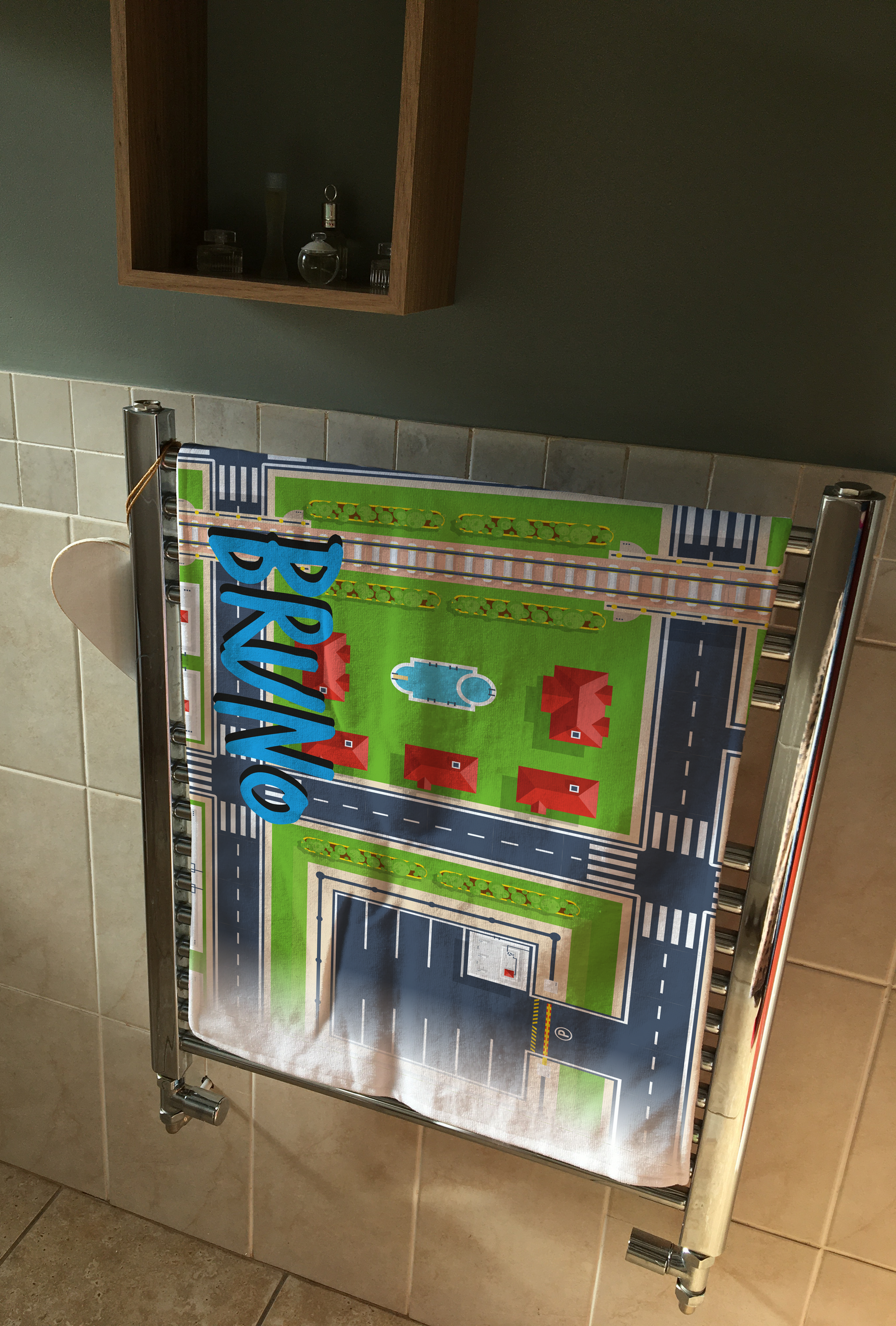 Design is created with your chosen name and is then printed here in the UK using a sublimation technique, meaning the fabric itself is dyed and the design has not been stuck on so it will not come out in the wash!
