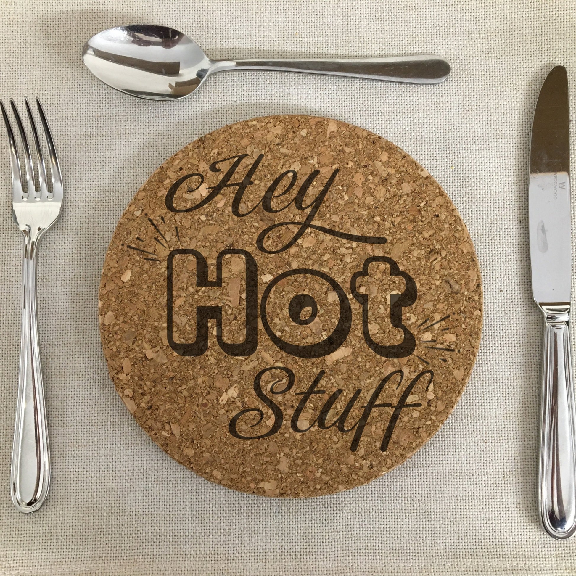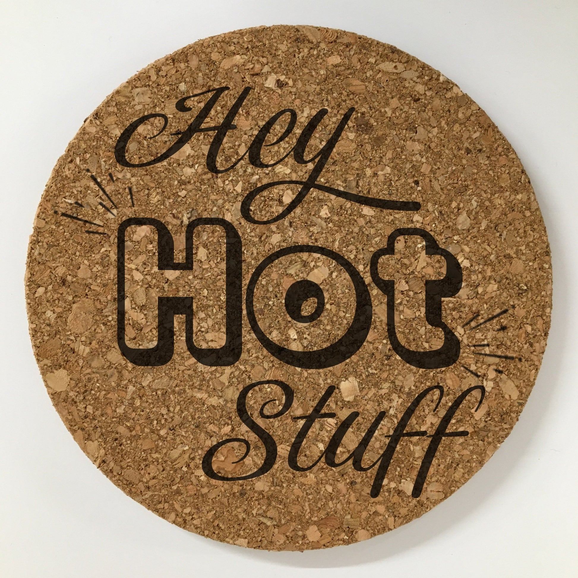 Add a little humour to dinner time! This pre-designed cork pot holder trivet will make the perfect addition to your table.