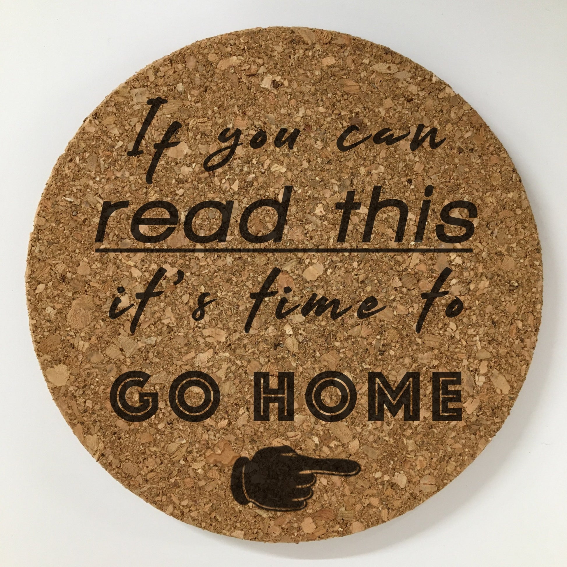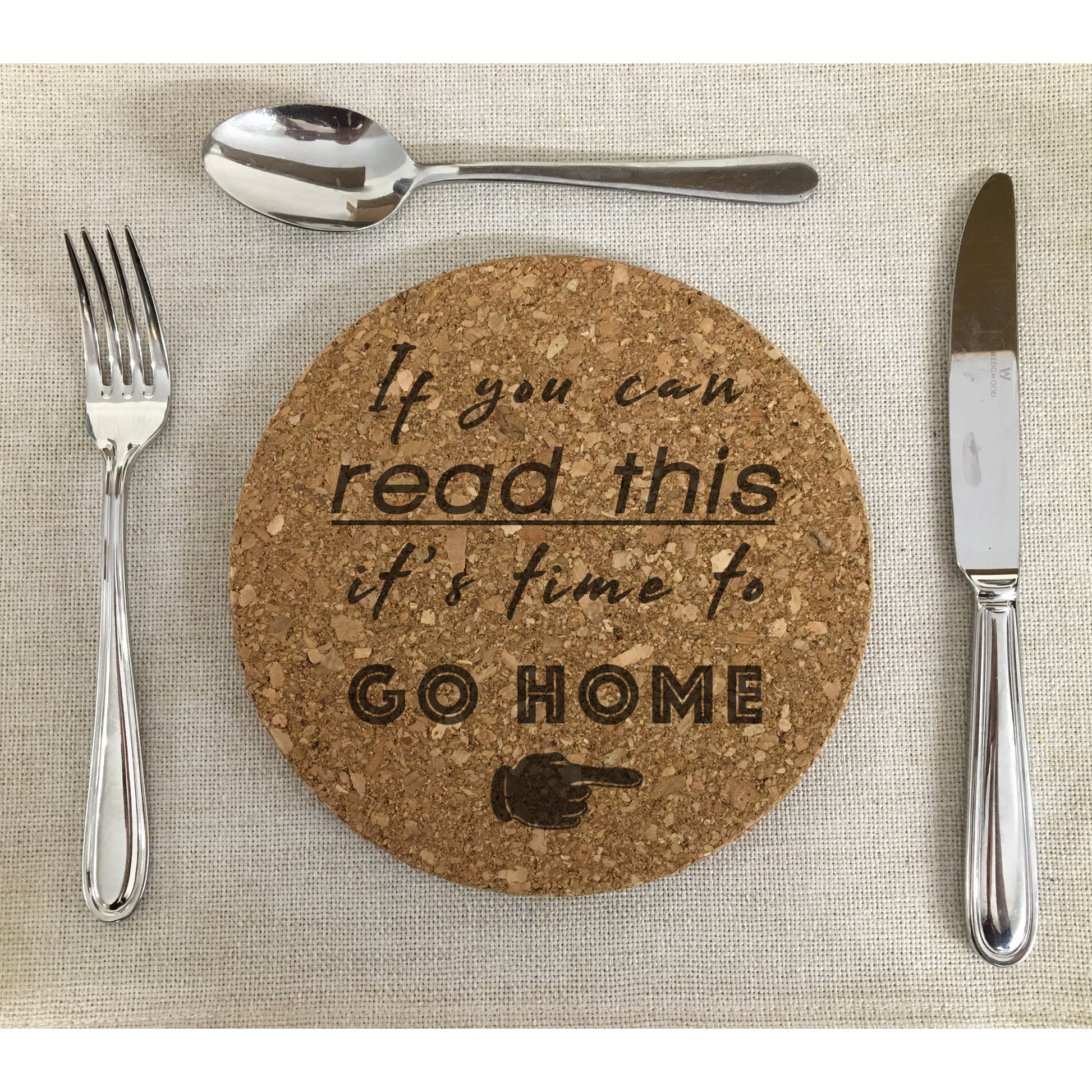 Add a little humour to dinner time! This pre-designed cork pot holder trivet will make the perfect addition to your table.