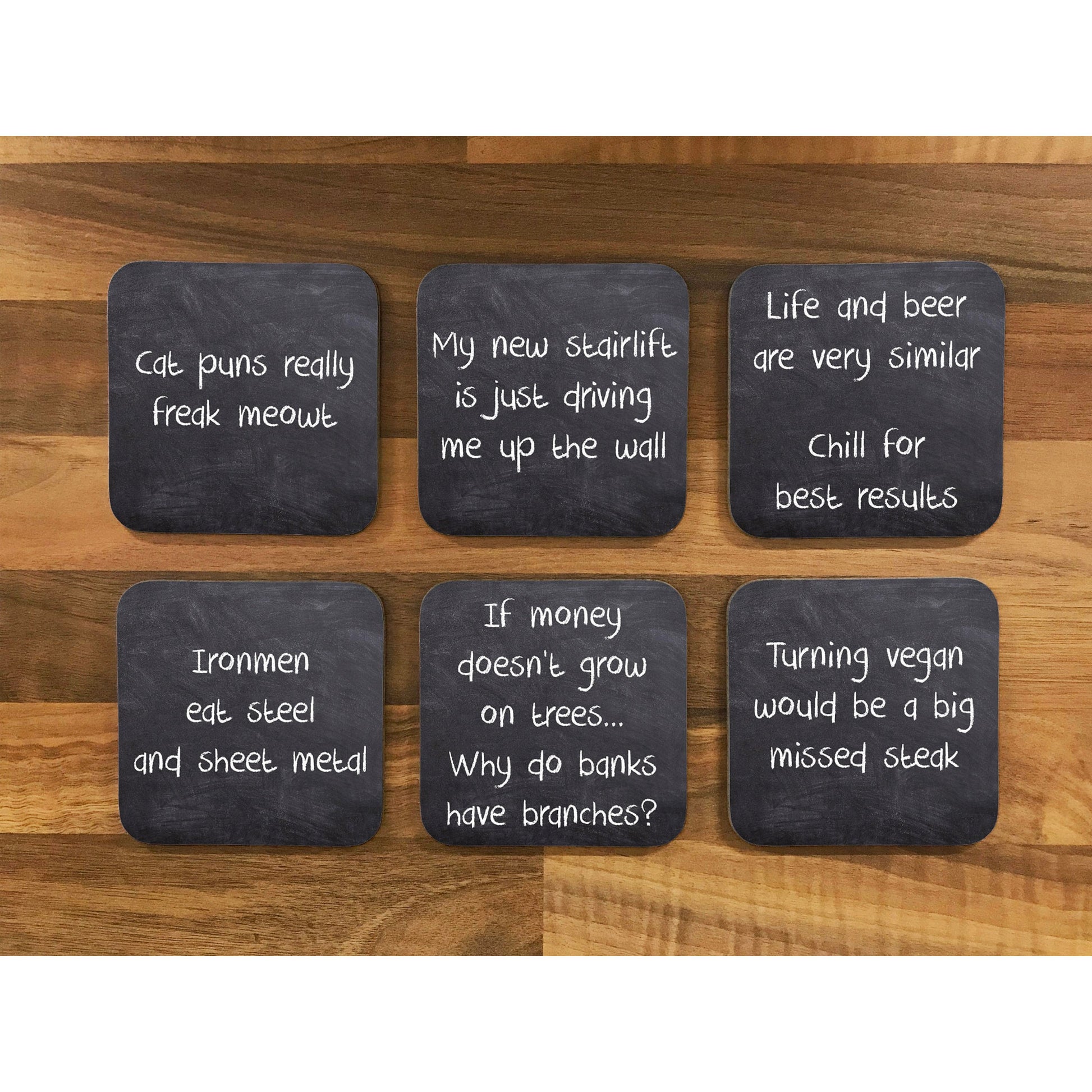 Set No 1 - Chalk Board Effect Pun Coasters - 6pk