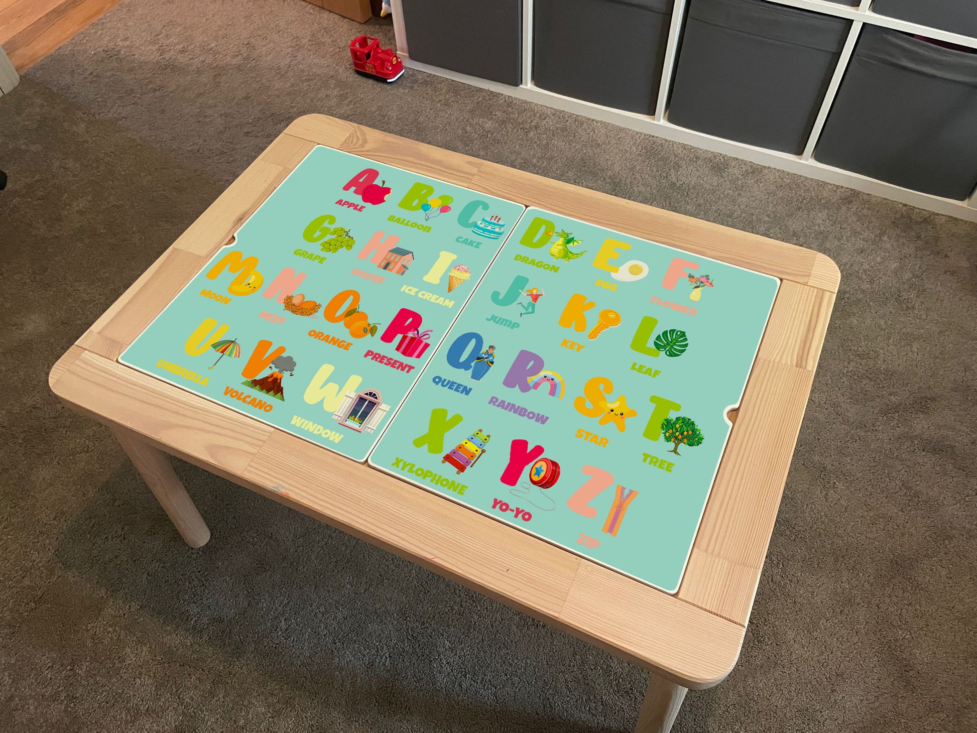 Kids Object Alphabet Table Top STICKER ONLY Compatible with IKEA Flisat Tables