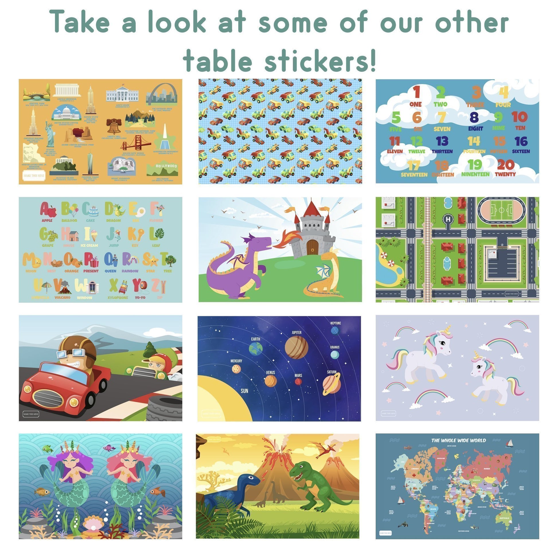 A brilliant, vibrant sticker for your little ones table to play on or eat at. Our table stickers are wipe clean which will not rub off the print.