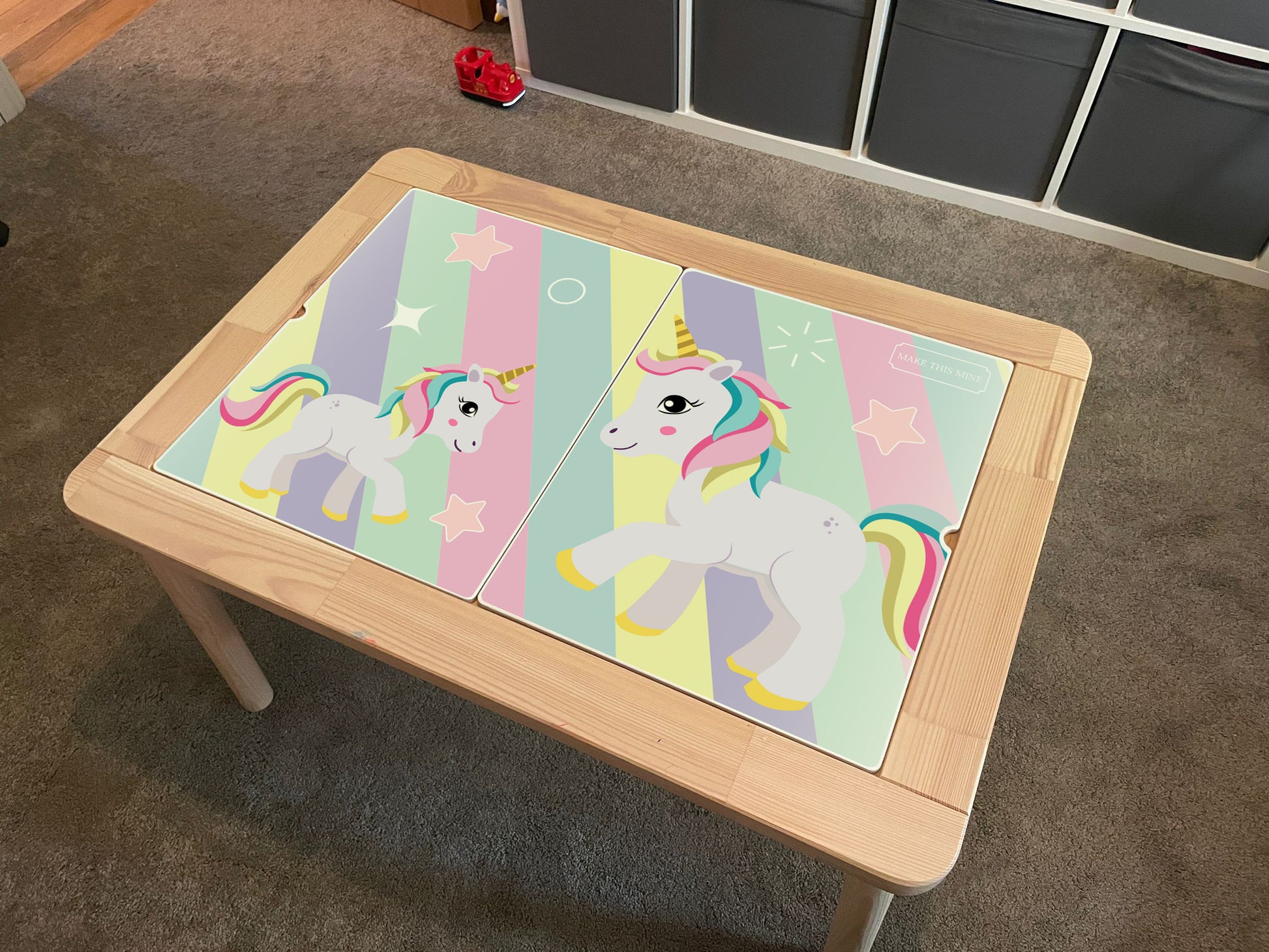 Kids Striped Unicorn Table Top STICKER ONLY Compatible with IKEA Flisat Tables