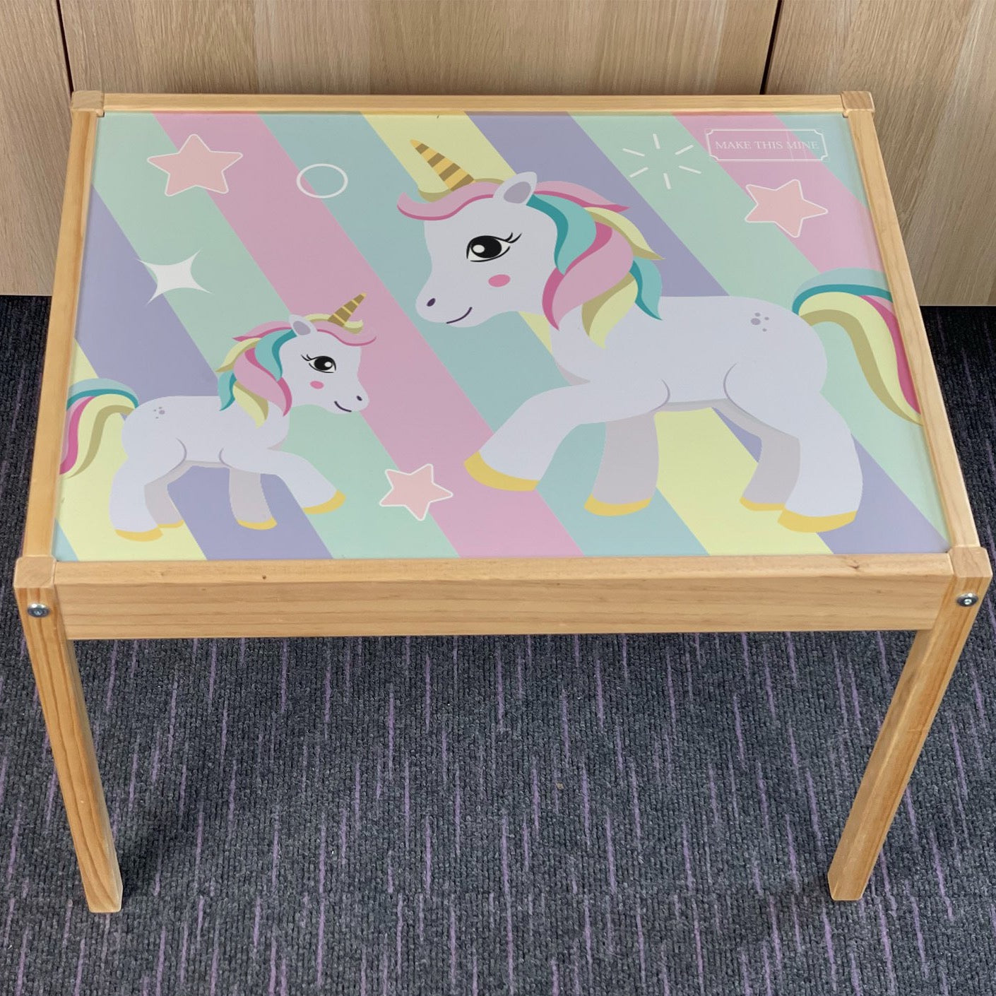 Kids Striped Unicorn Table Top STICKER ONLY Compatible with IKEA Latt Tables
