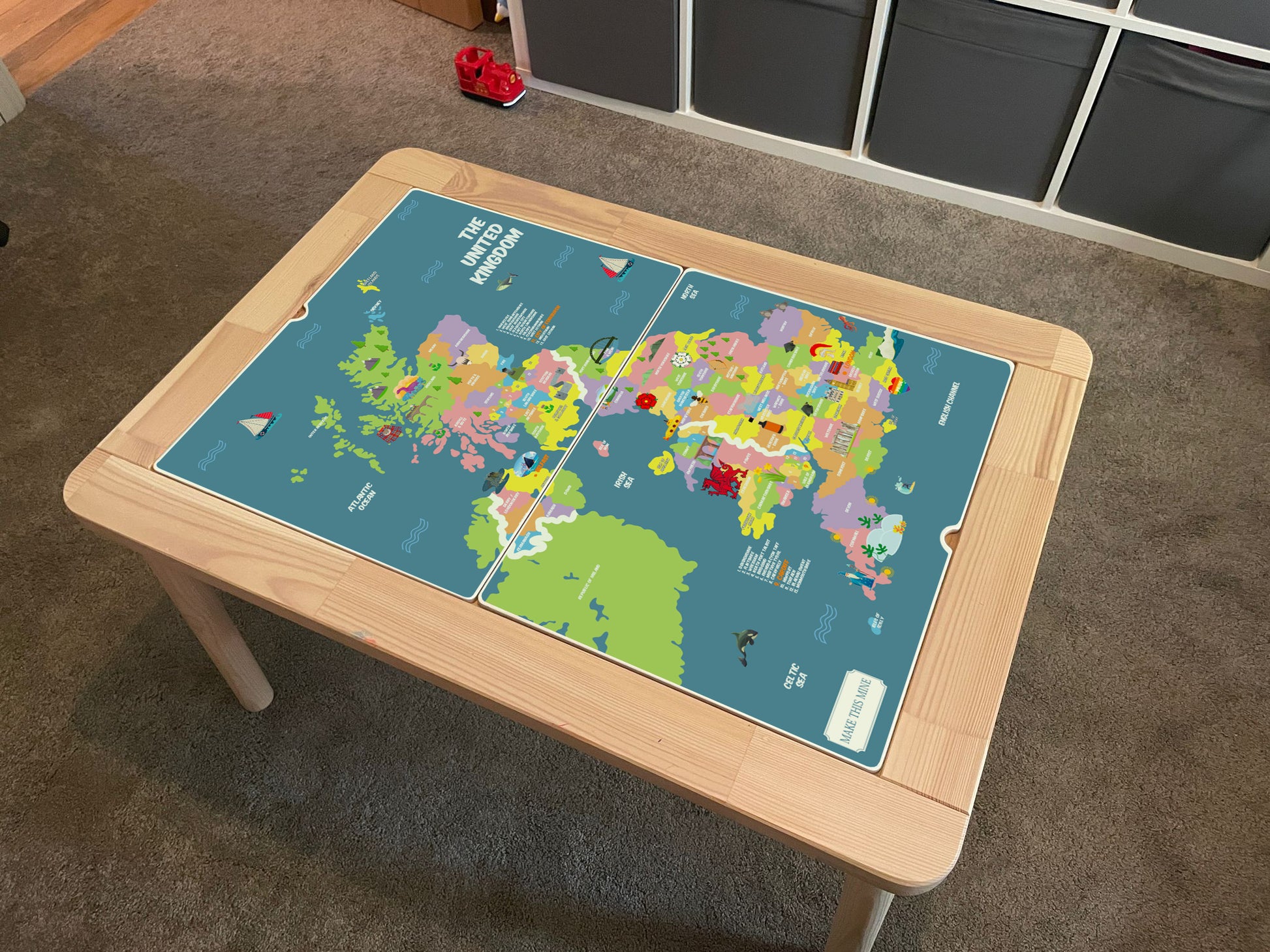 Kids UK Map Table Top STICKER ONLY Compatible with IKEA Flisat Tables