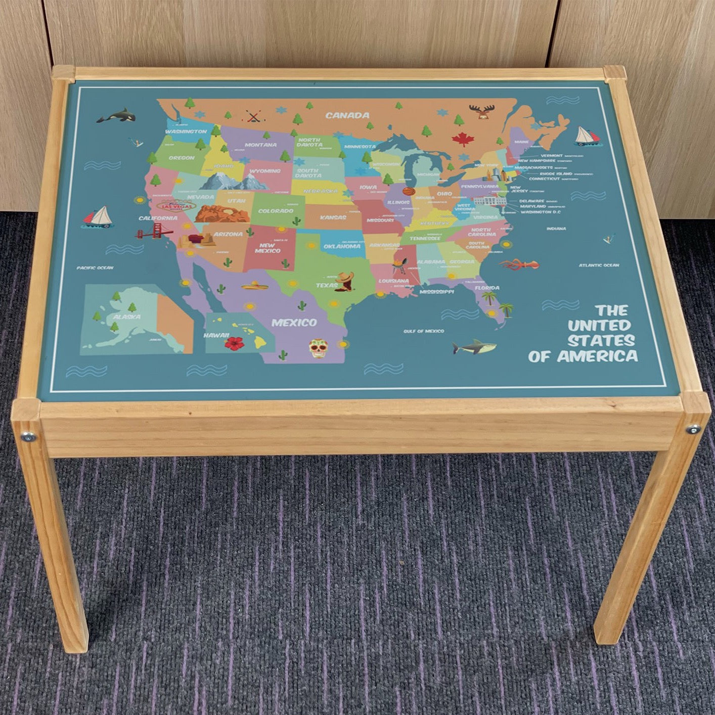 Kids USA Map Table Top STICKER ONLY Compatible with IKEA Latt Tables