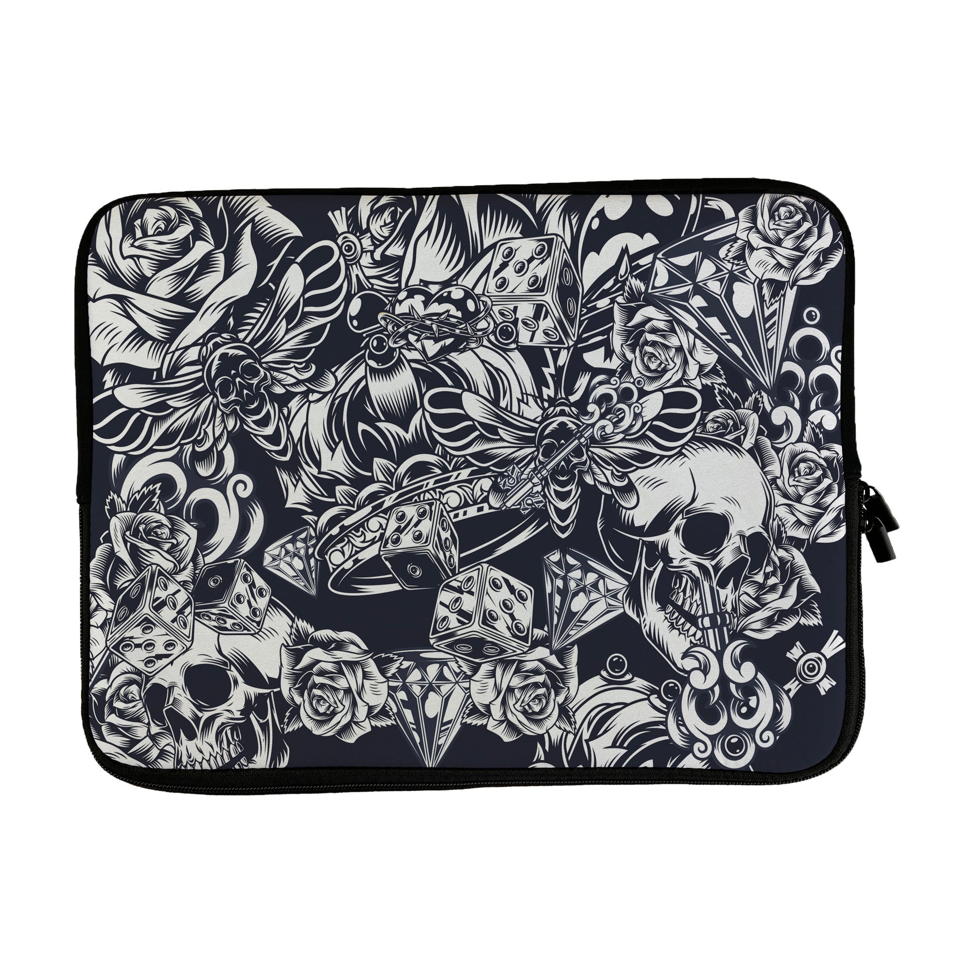Laptop Sleeve with Black and White Skulls and Roses Design