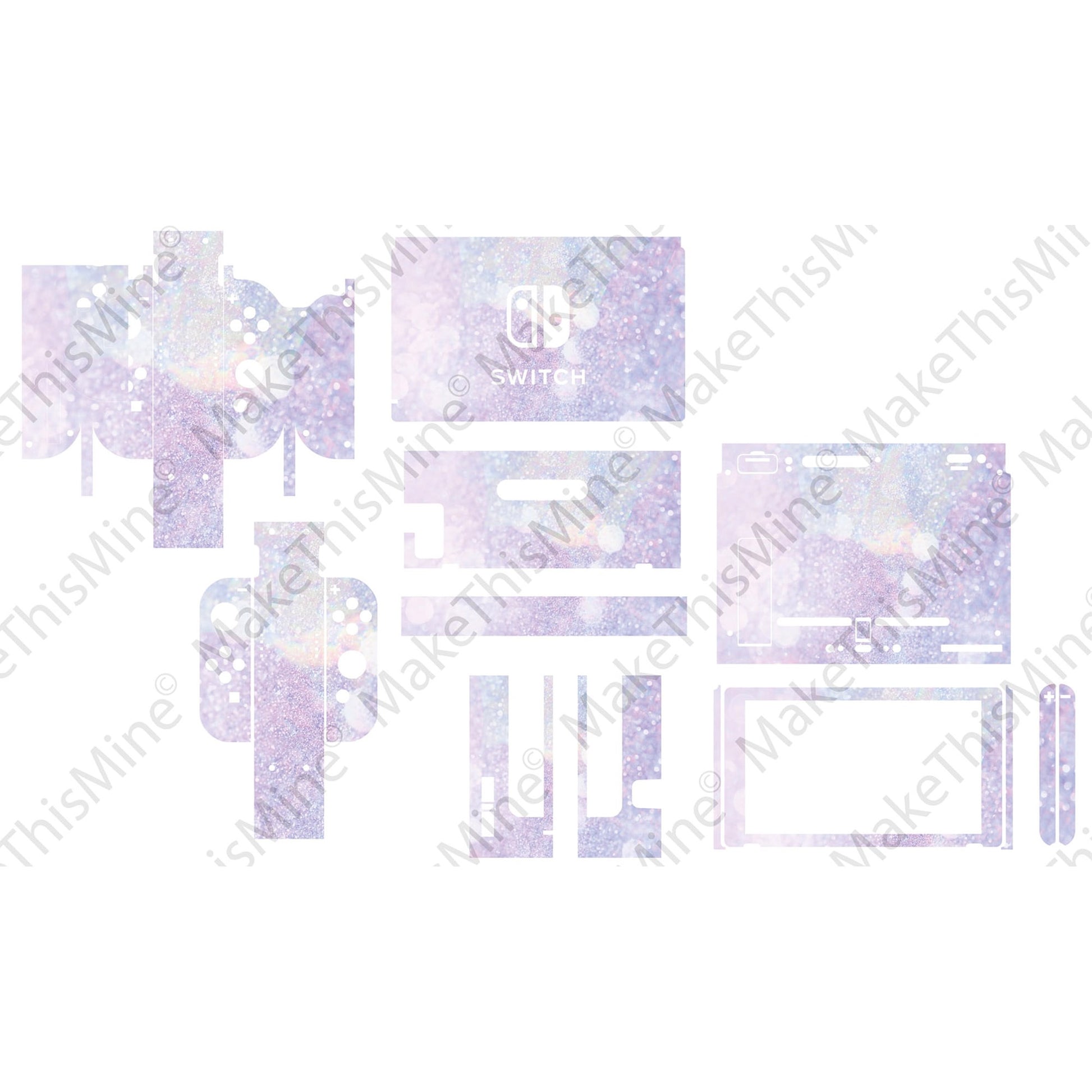 Nintendo Switch Skin, purple bokeh sticker design on vinyl.