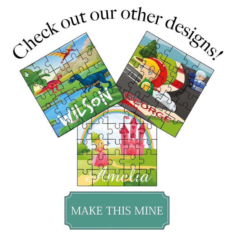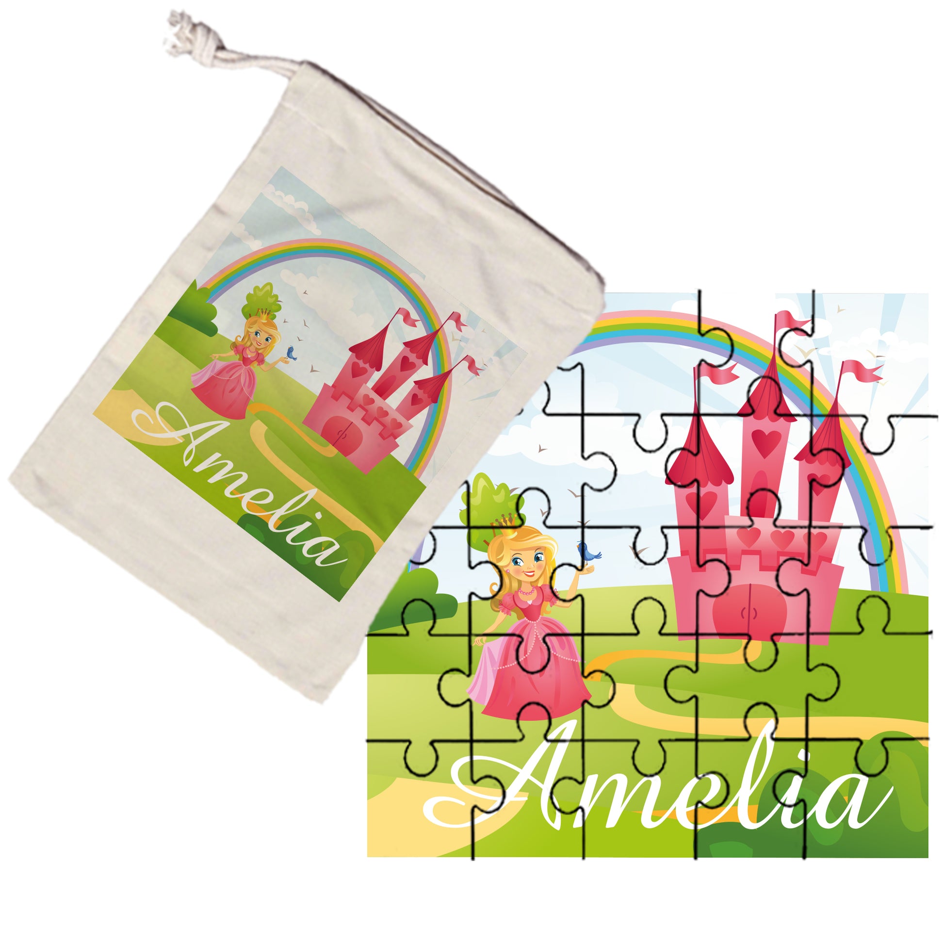 MDF 25pcs Princess Square Jigsaw Puzzle with Storage Gift Bag, both with the princess image and personalised name printed on.