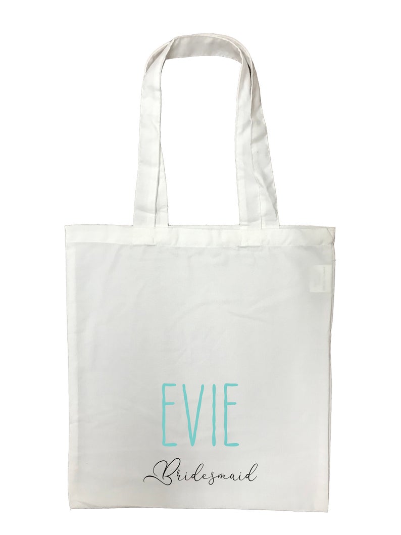 Personalised Bridesmaid White Tote Bag with Blue Text