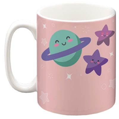 Fantastic colourful pink space design. Our personalised mugs make excellent fun gifts ideal for family and friends.