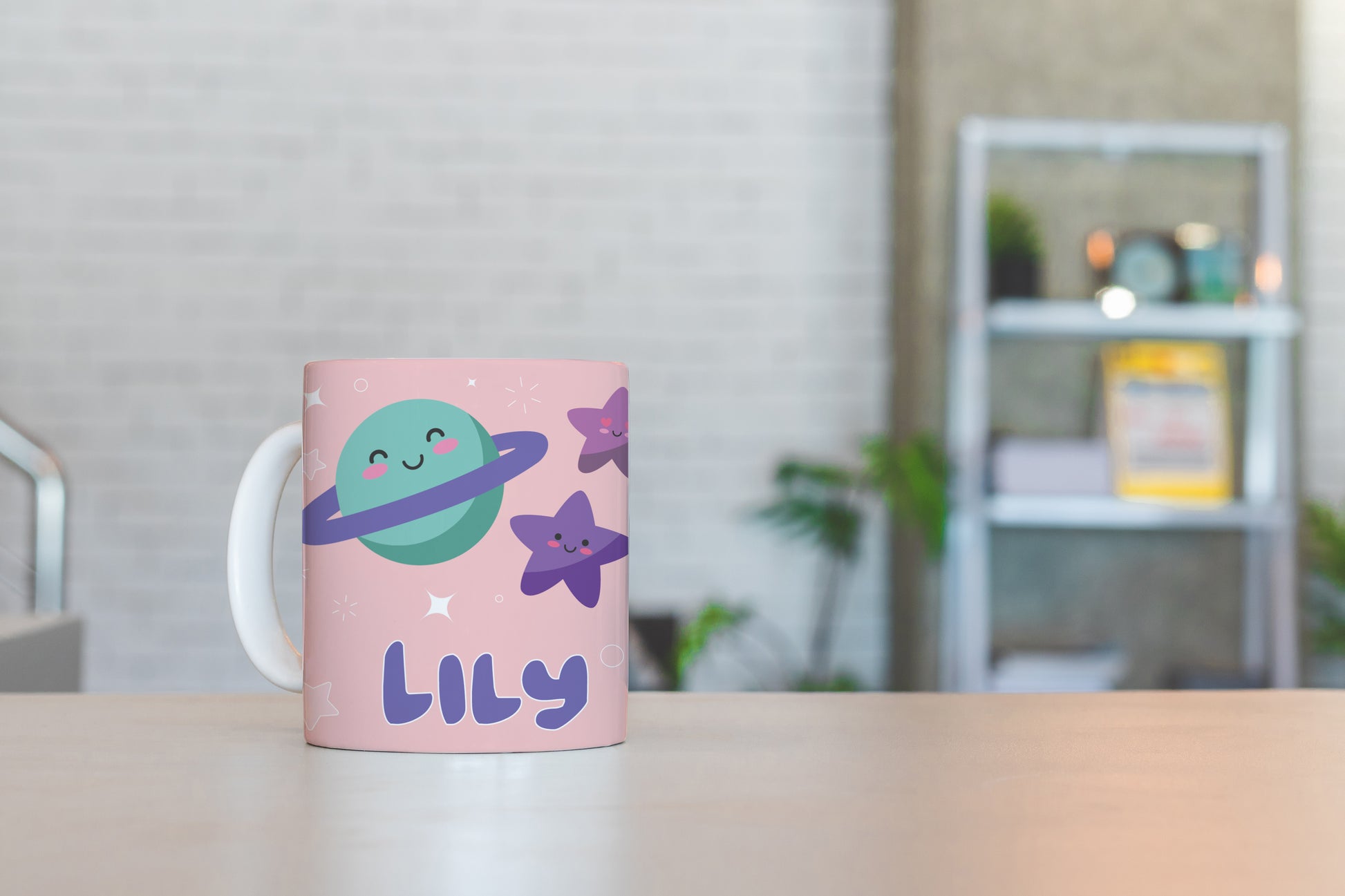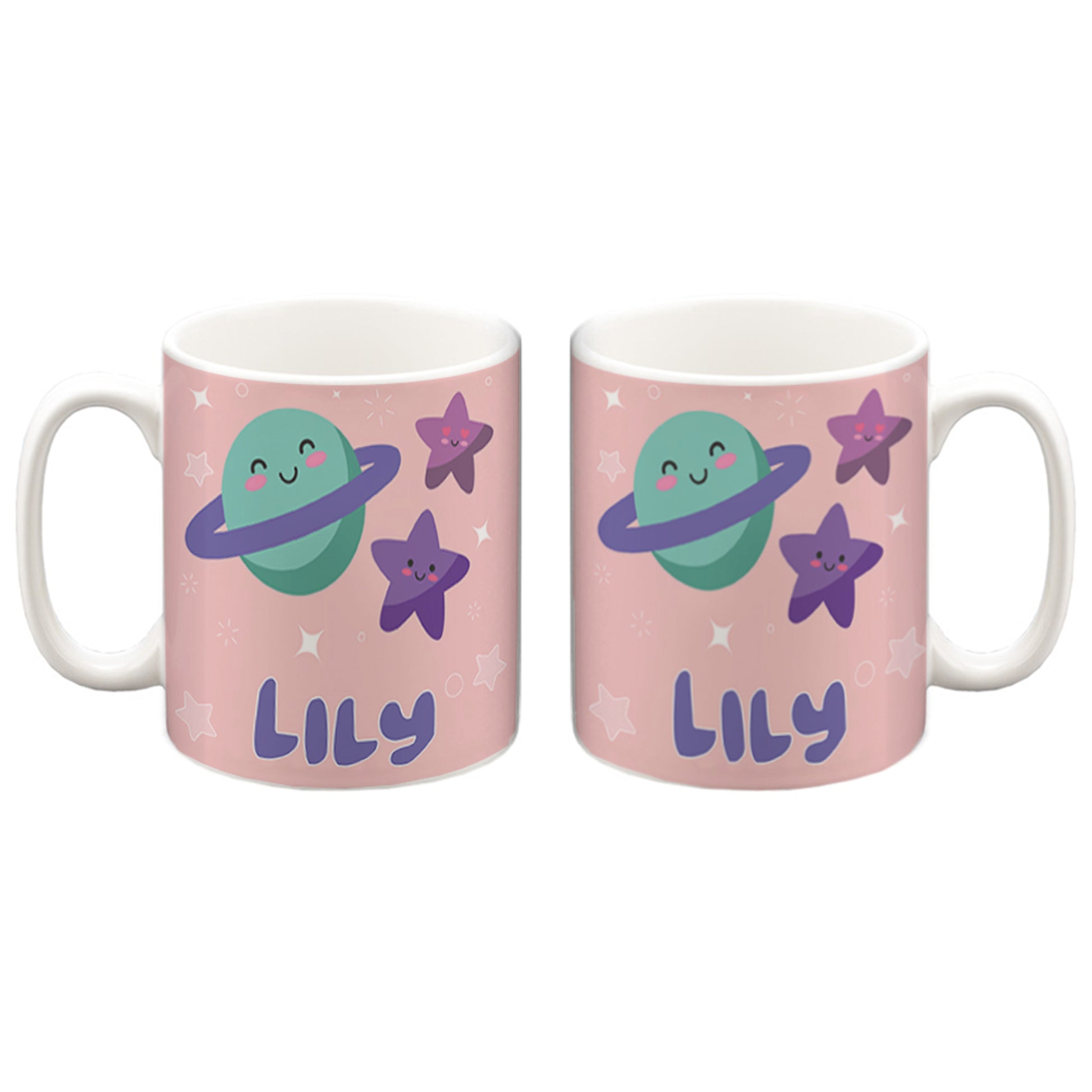 Personalised Children's 10oz Ceramic Mug - Pink Space