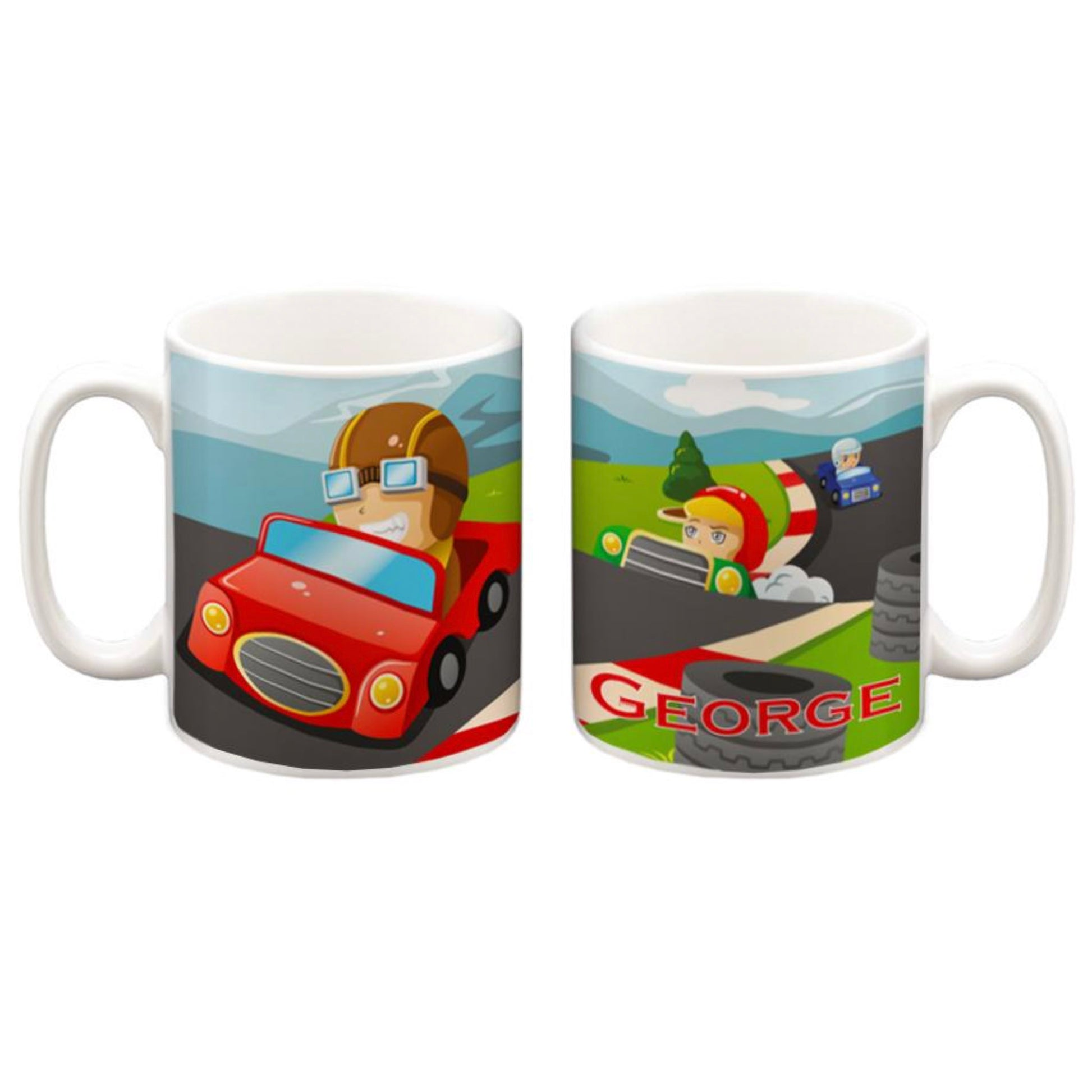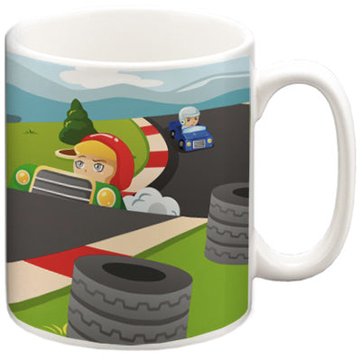 Fantastic colourful racecar design. Our personalised mugs make excellent fun gifts ideal for family and friends.
