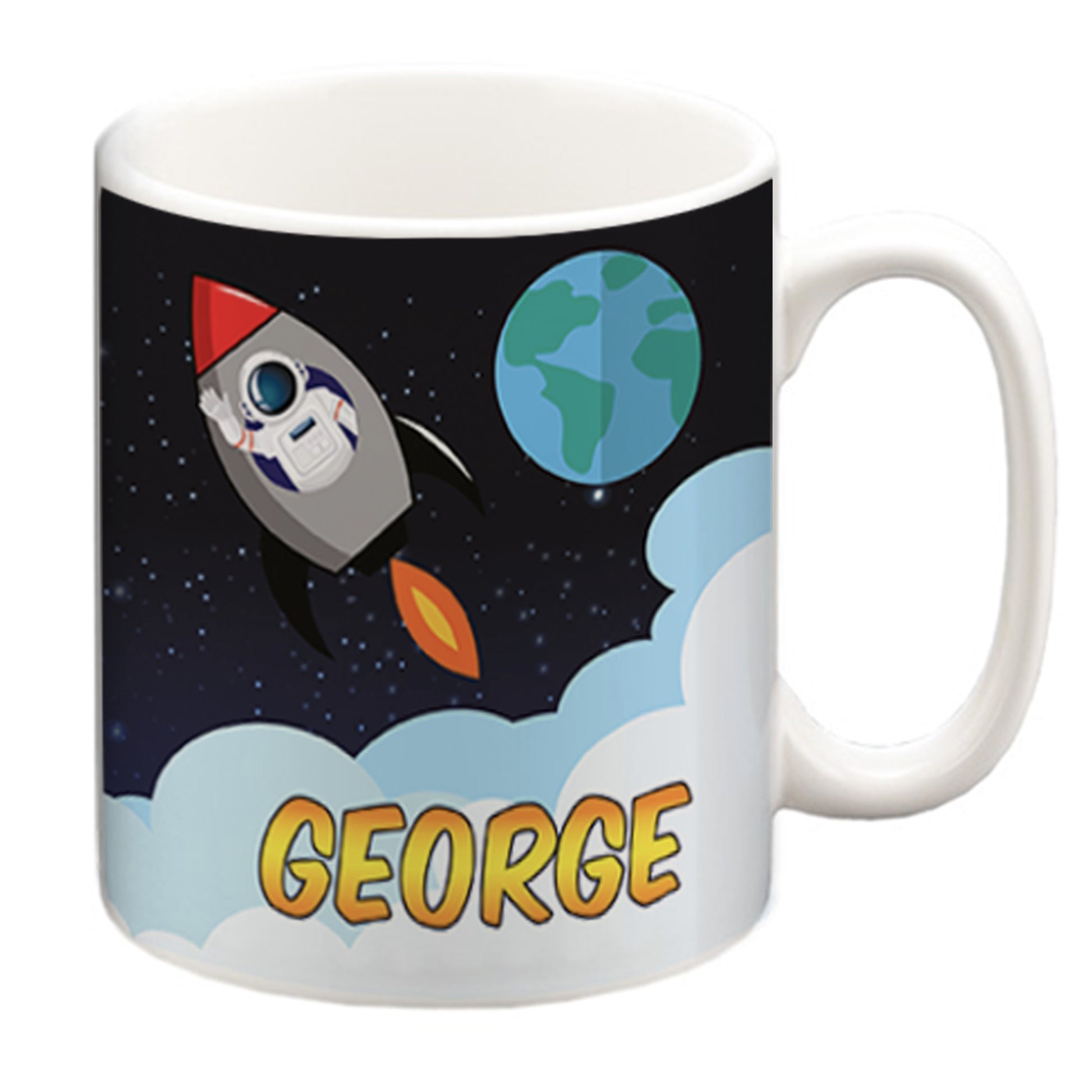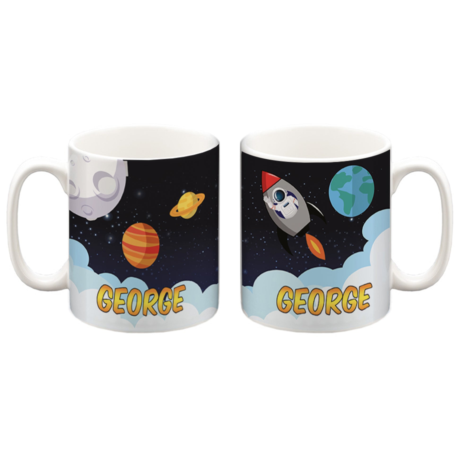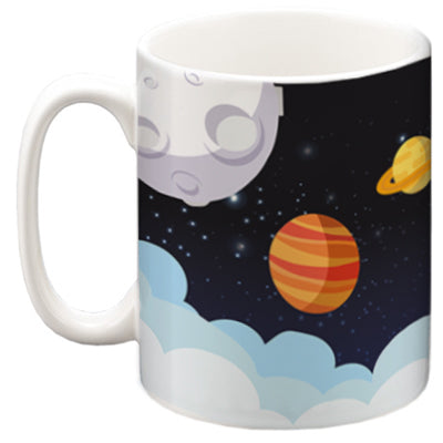 Fantastic colourful space design. Our personalised mugs make excellent fun gifts ideal for family and friends.
