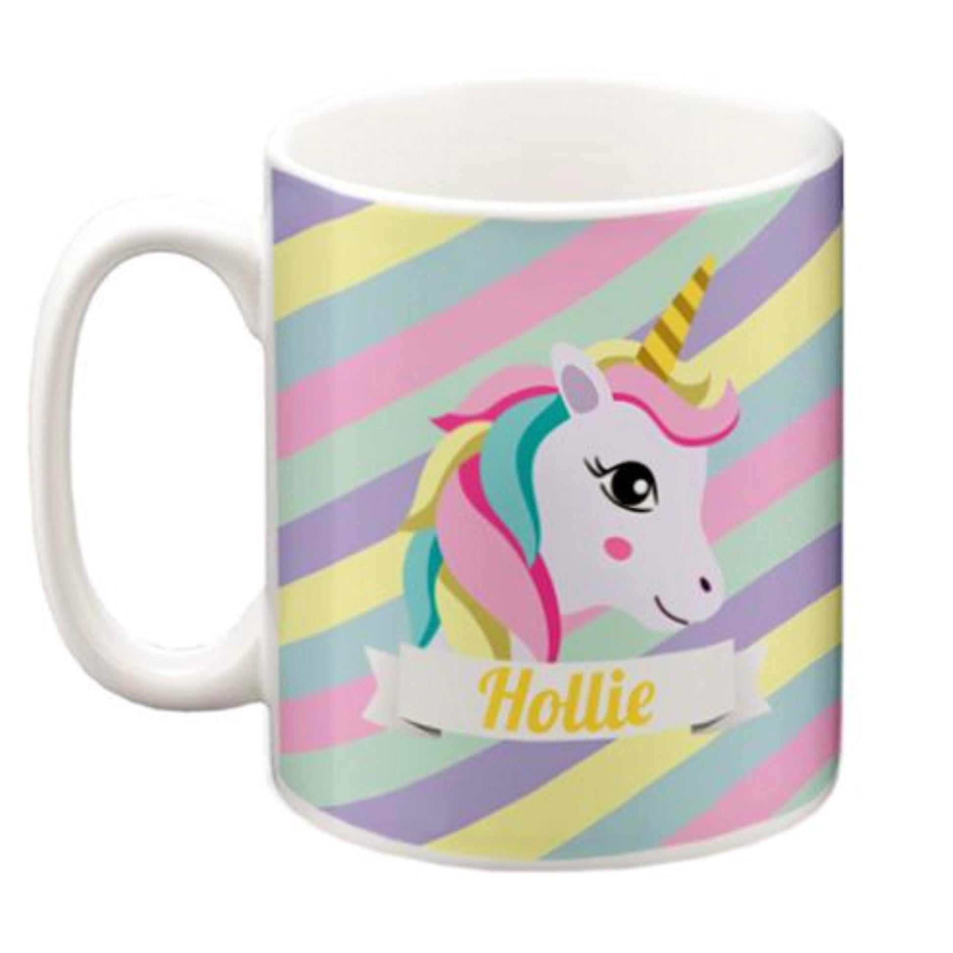 Fantastic colourful unicorn design. Our personalised unicorn mugs make excellent fun gifts ideal for family and friends.