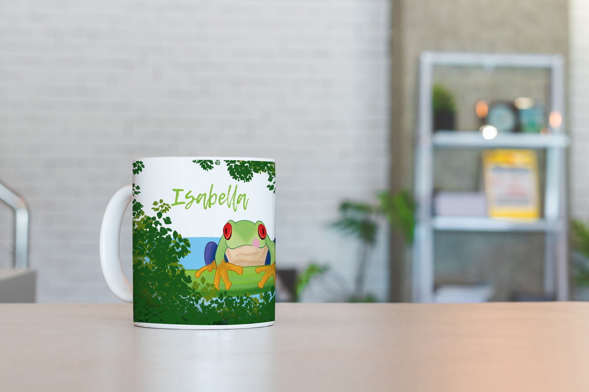 Colourful frog design. Our personalised mugs make excellent fun gifts ideal for family and friends.