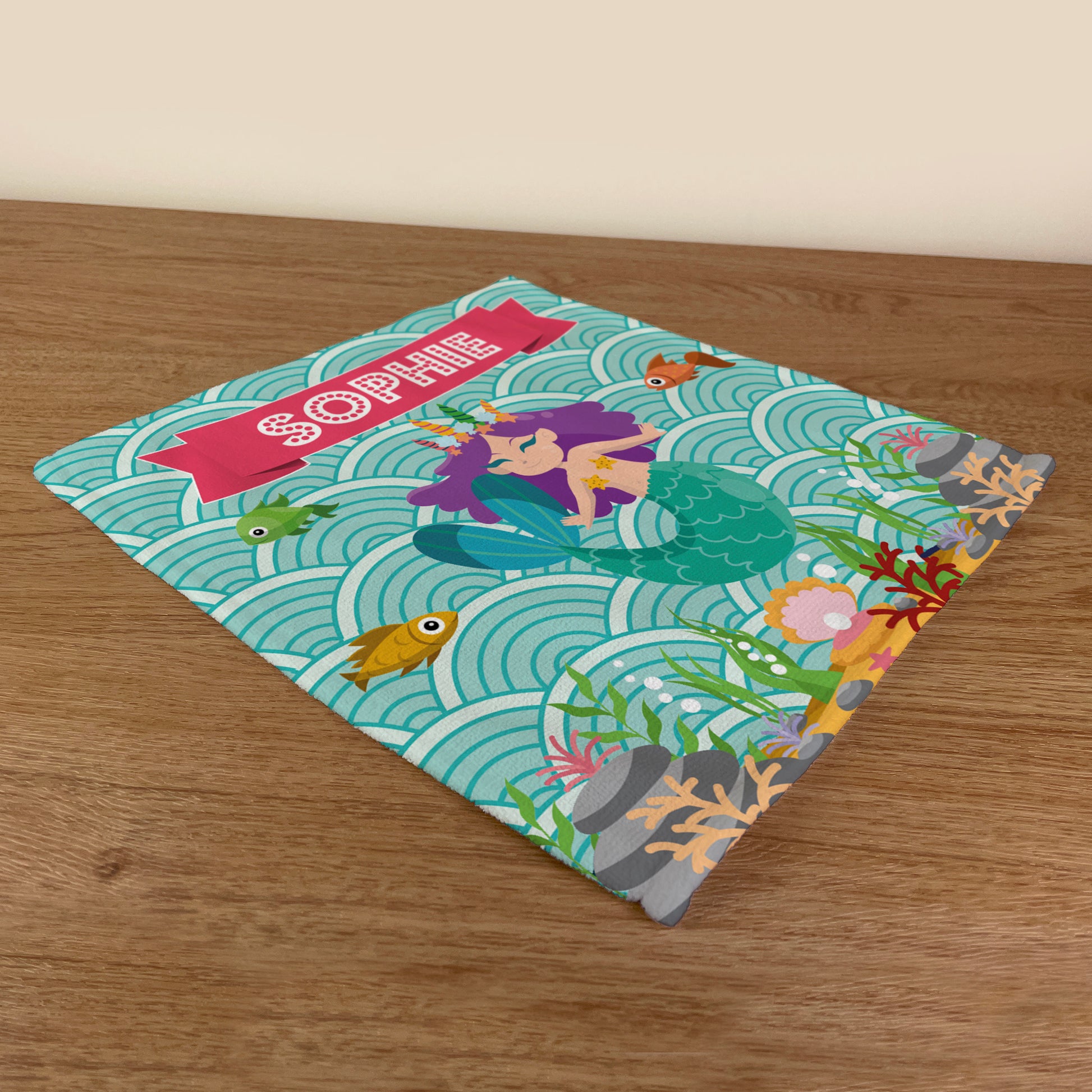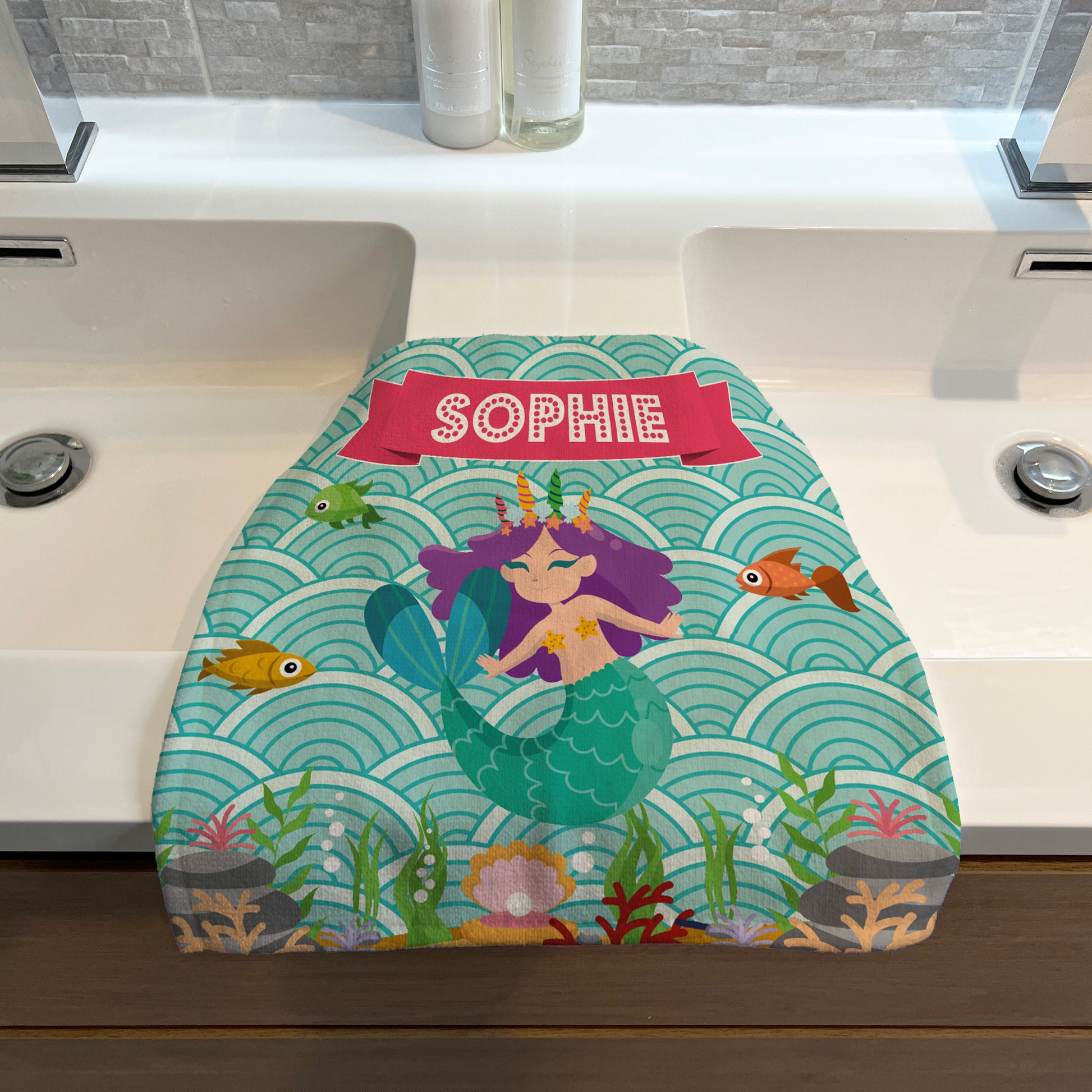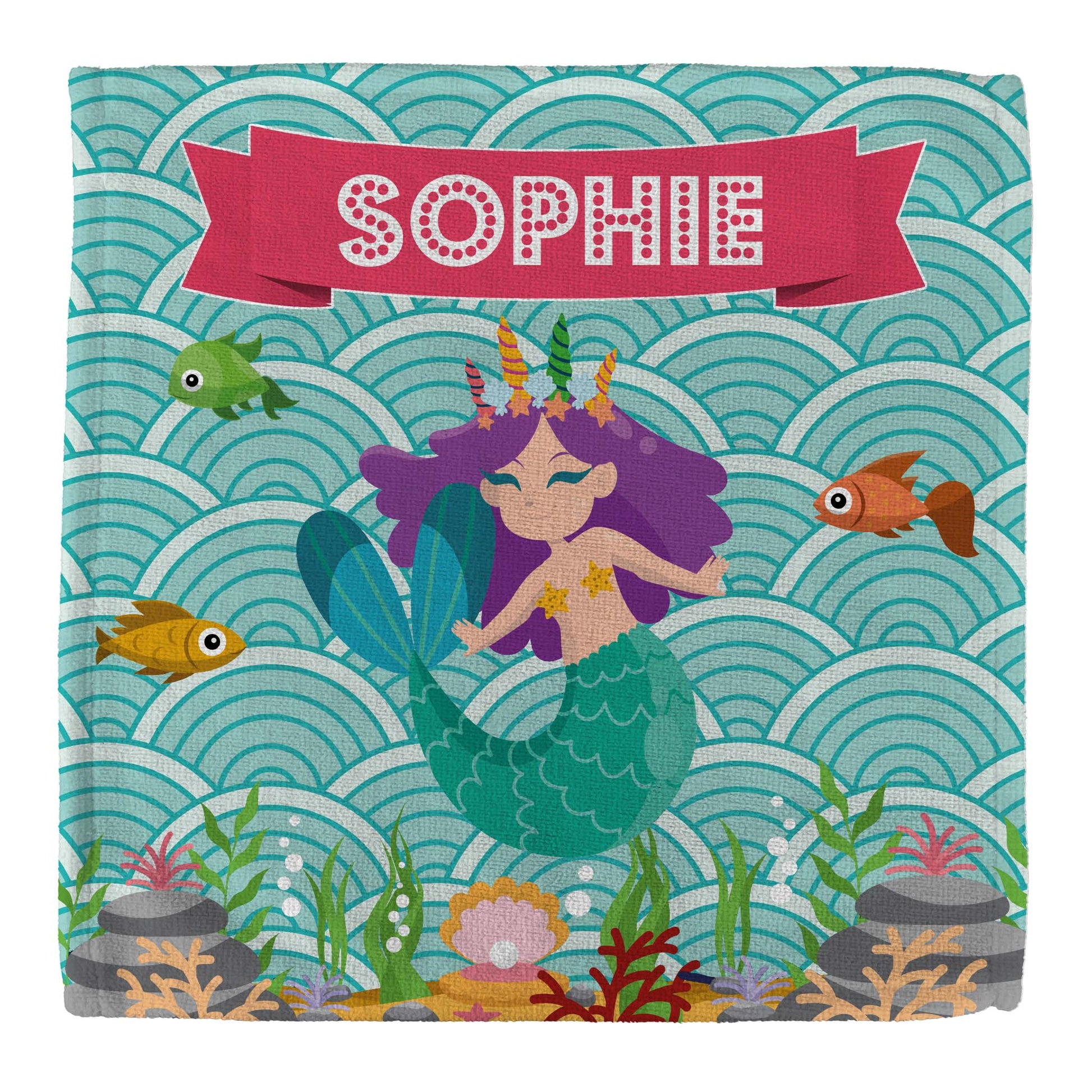 Mermaid design! Bright white face cloth with a microfibre front and a 100% cotton back. Perfect for bath time and beach days!