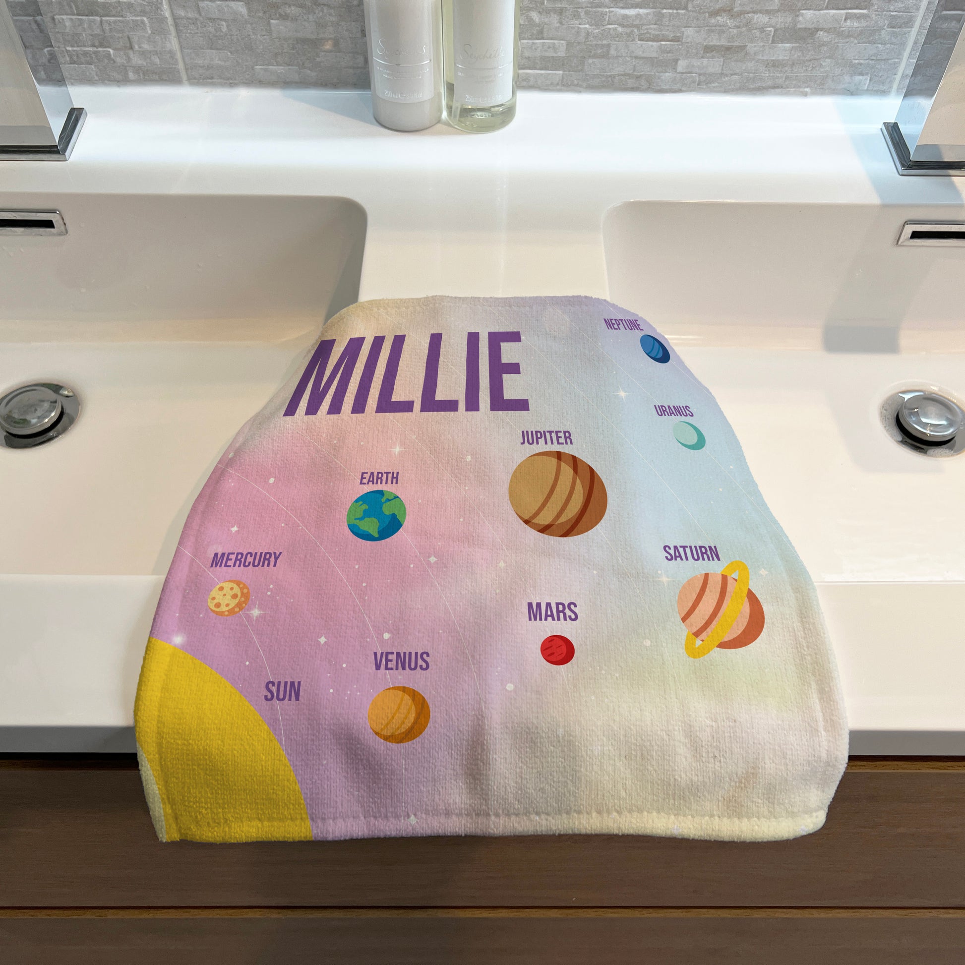 Personalised Children's Face Cloth - Pink Planet Solar System
