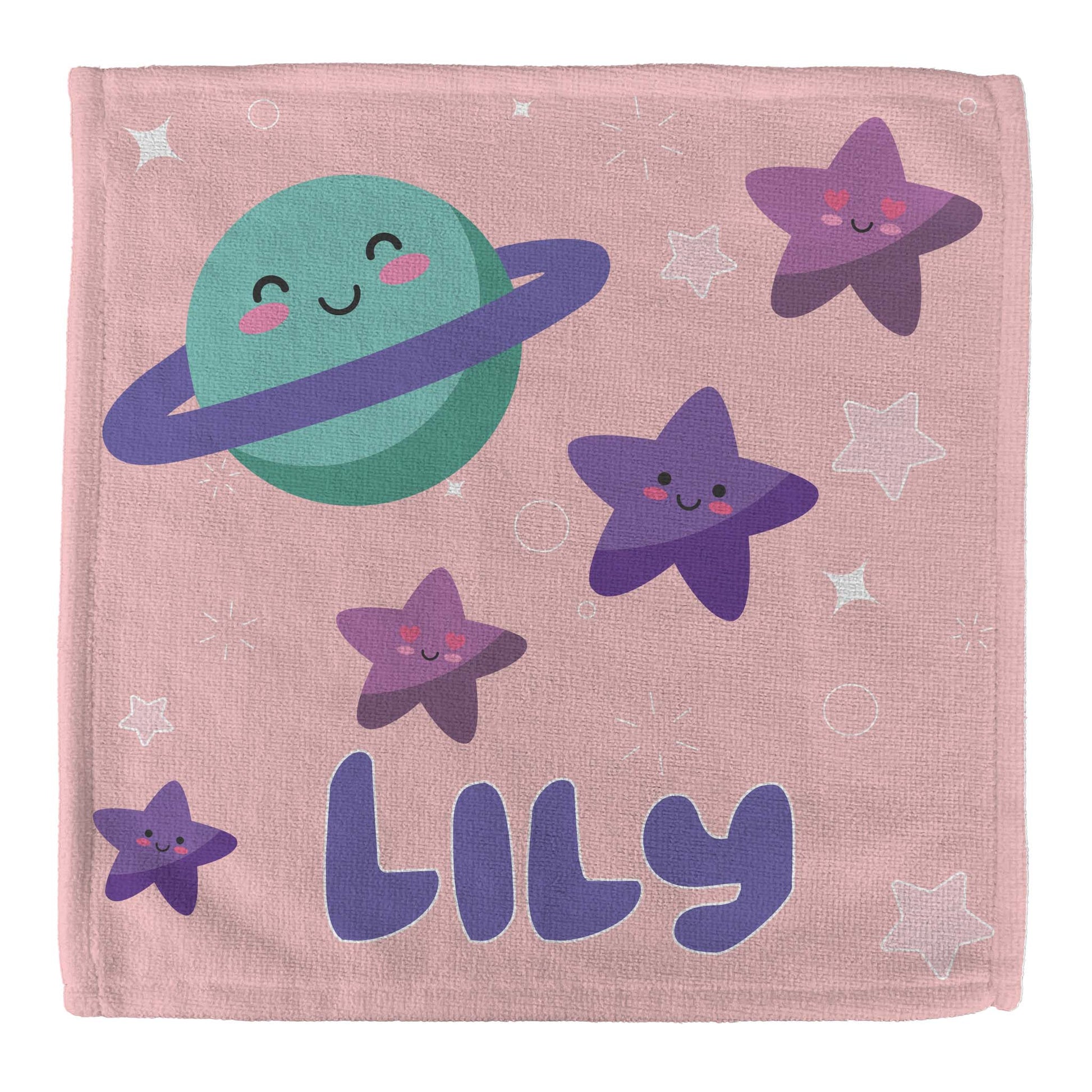 Pink Stars design! Bright white face cloth with a microfibre front and a 100% cotton back. Perfect for bath time and beach days!