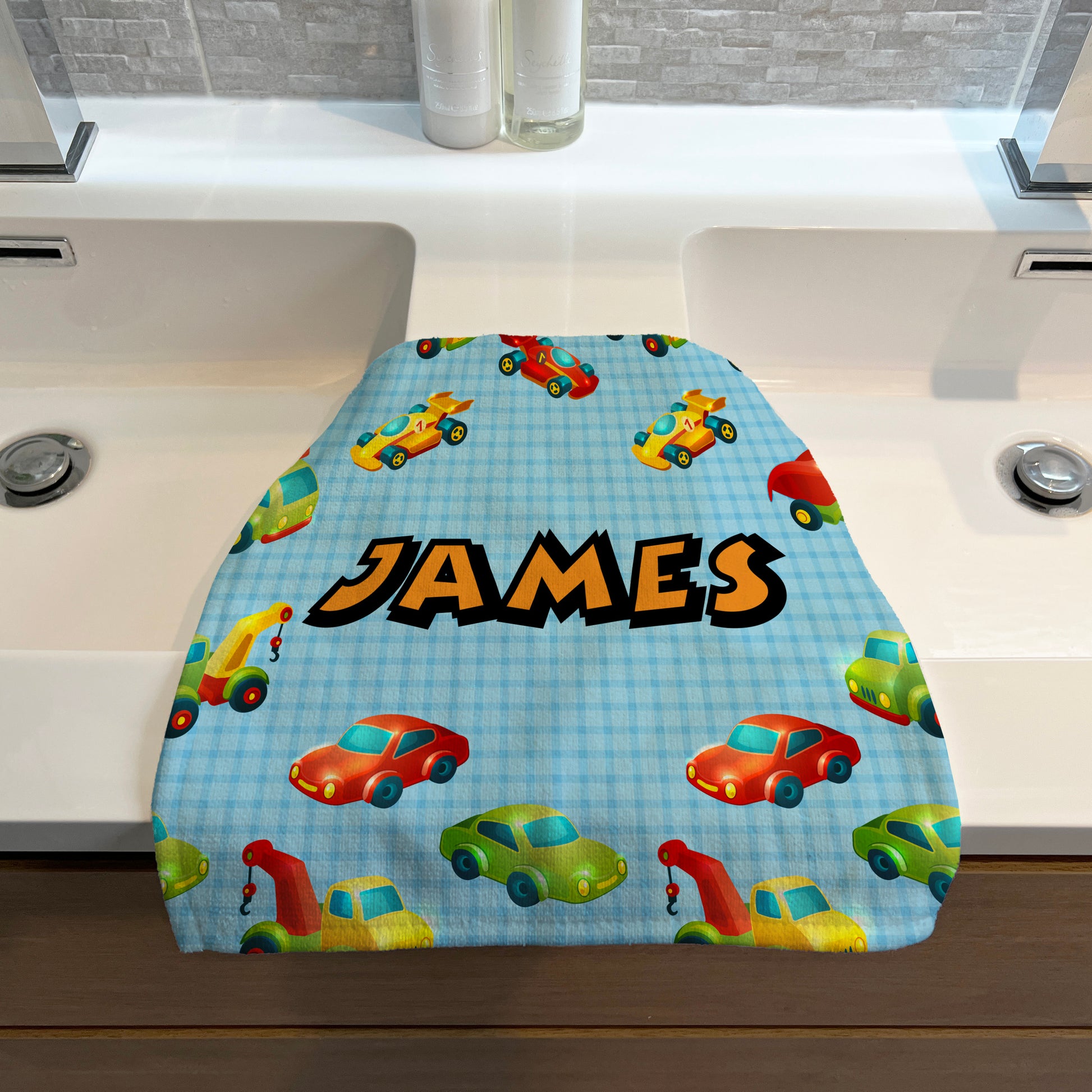 Trucks and Cars design! Bright white face cloth with a microfibre front and a 100% cotton back. Perfect for bath time and beach days!