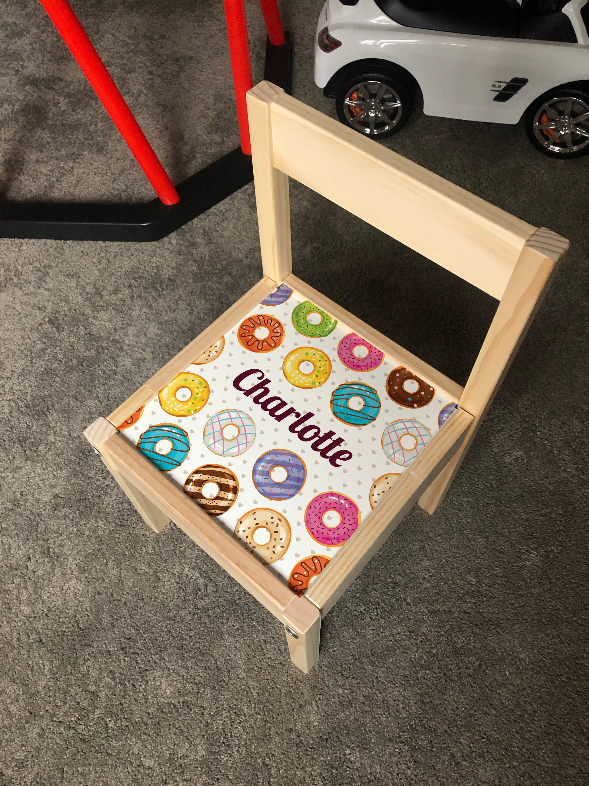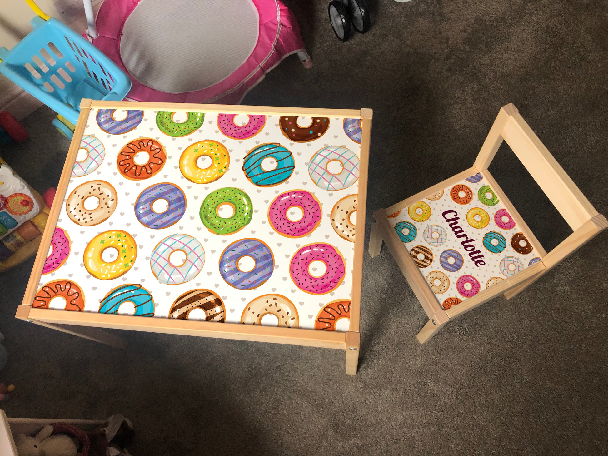 Personalised Children's Ikea LATT Wooden Table and 1 Chair Printed Donut