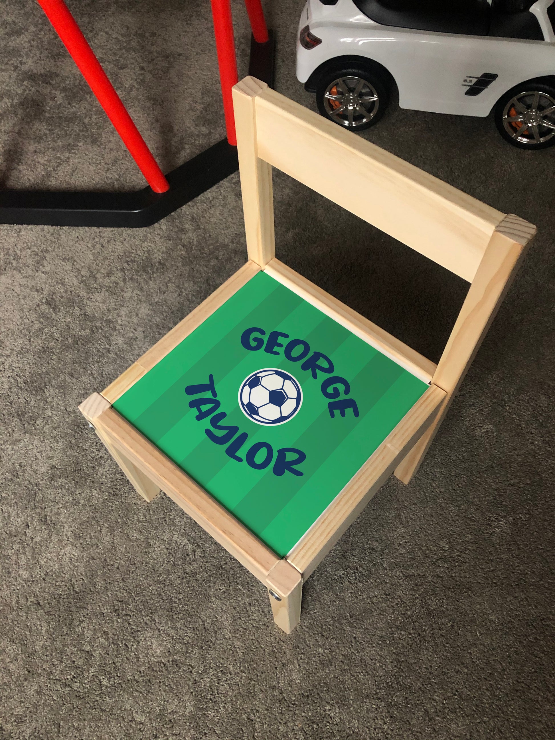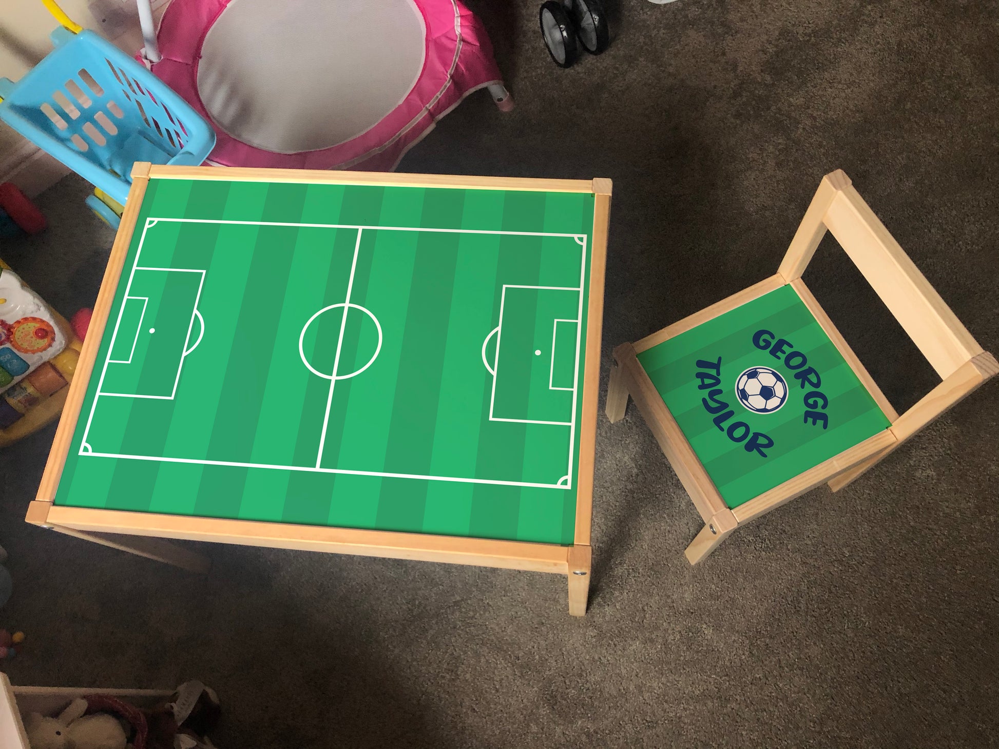 Personalised Children's Ikea LATT Wooden Table and 1 Chair Printed Football