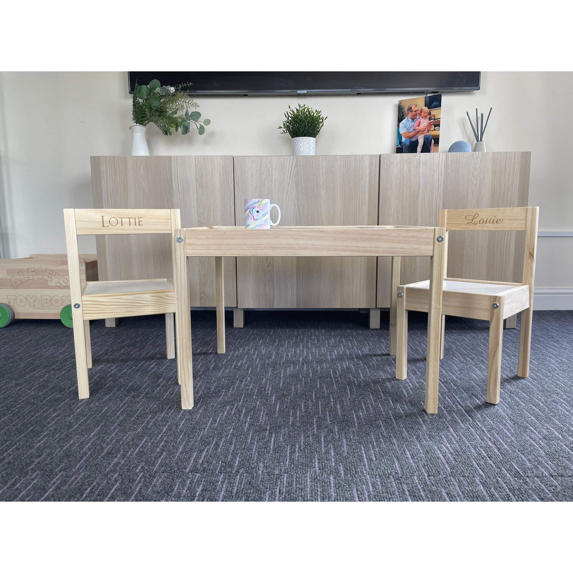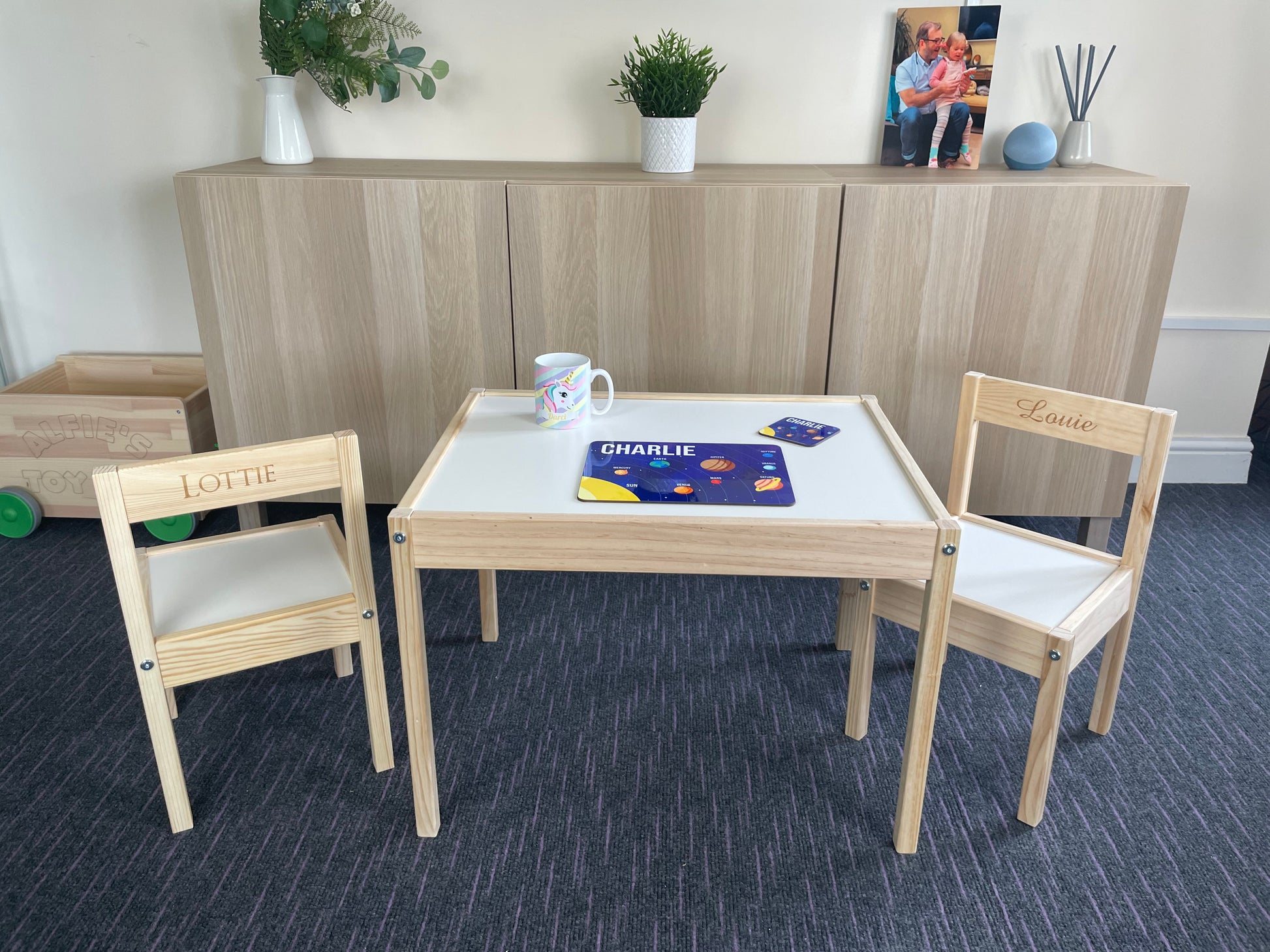 Personalised Children's Table and Chairs - Set includes 1 Table & 2 Chairs with laser engraving of your names.