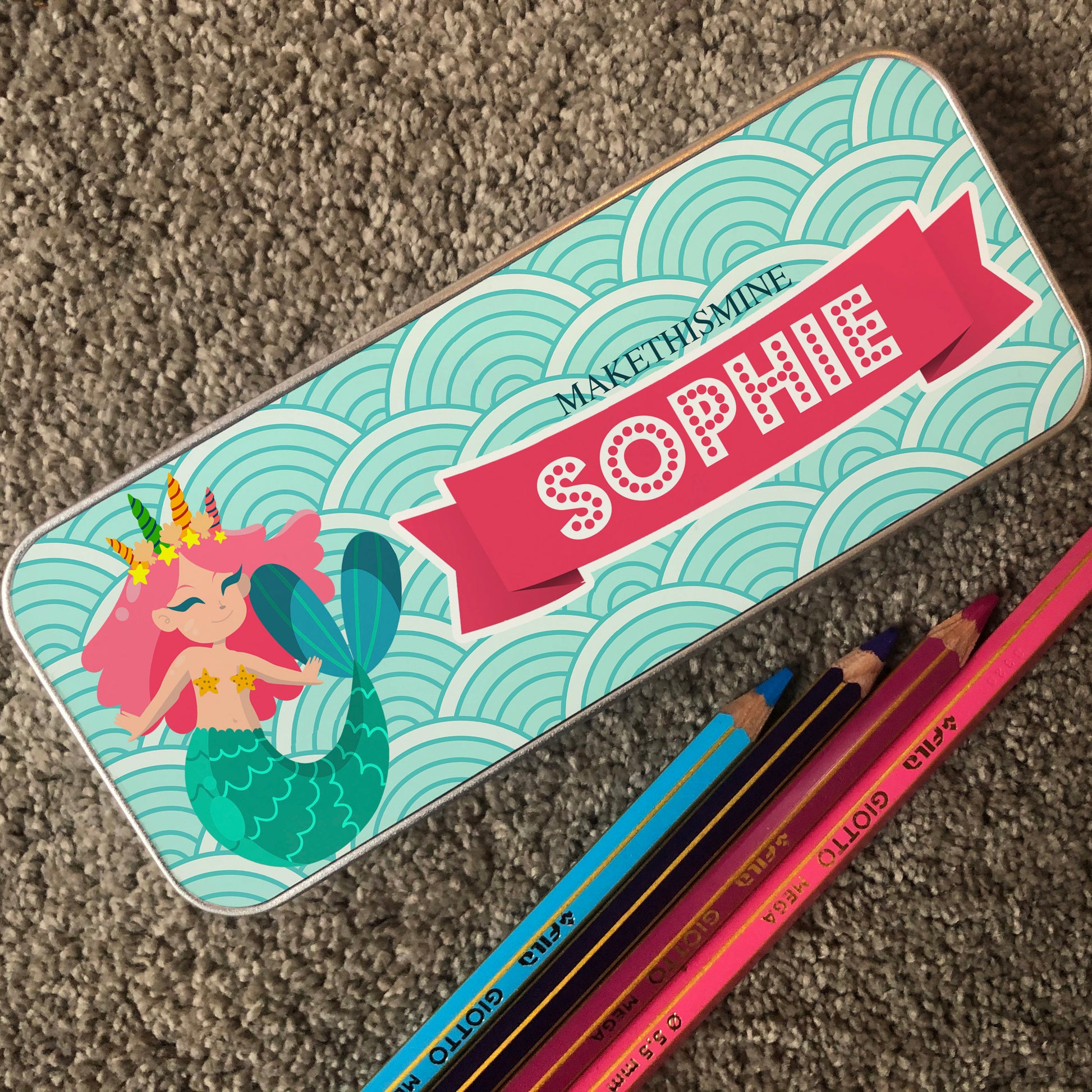 Personalised Children's Pencil Tin with Printed Mermaid Design