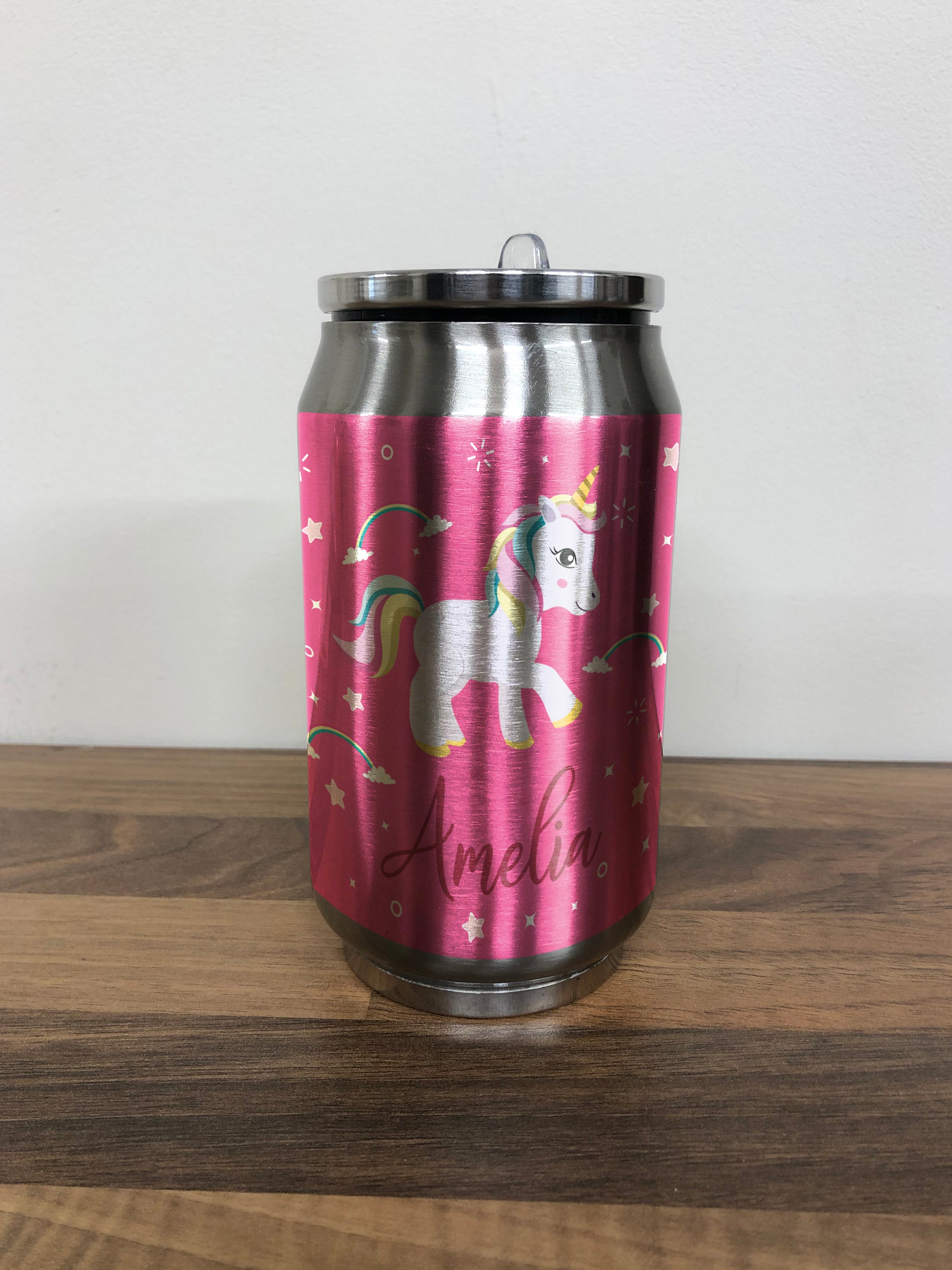 Fantastic reusable Coke style can with a colourful unicorn design. Our personalised unicorn drinks can makes an excellent fun gift ideal for family and friends.