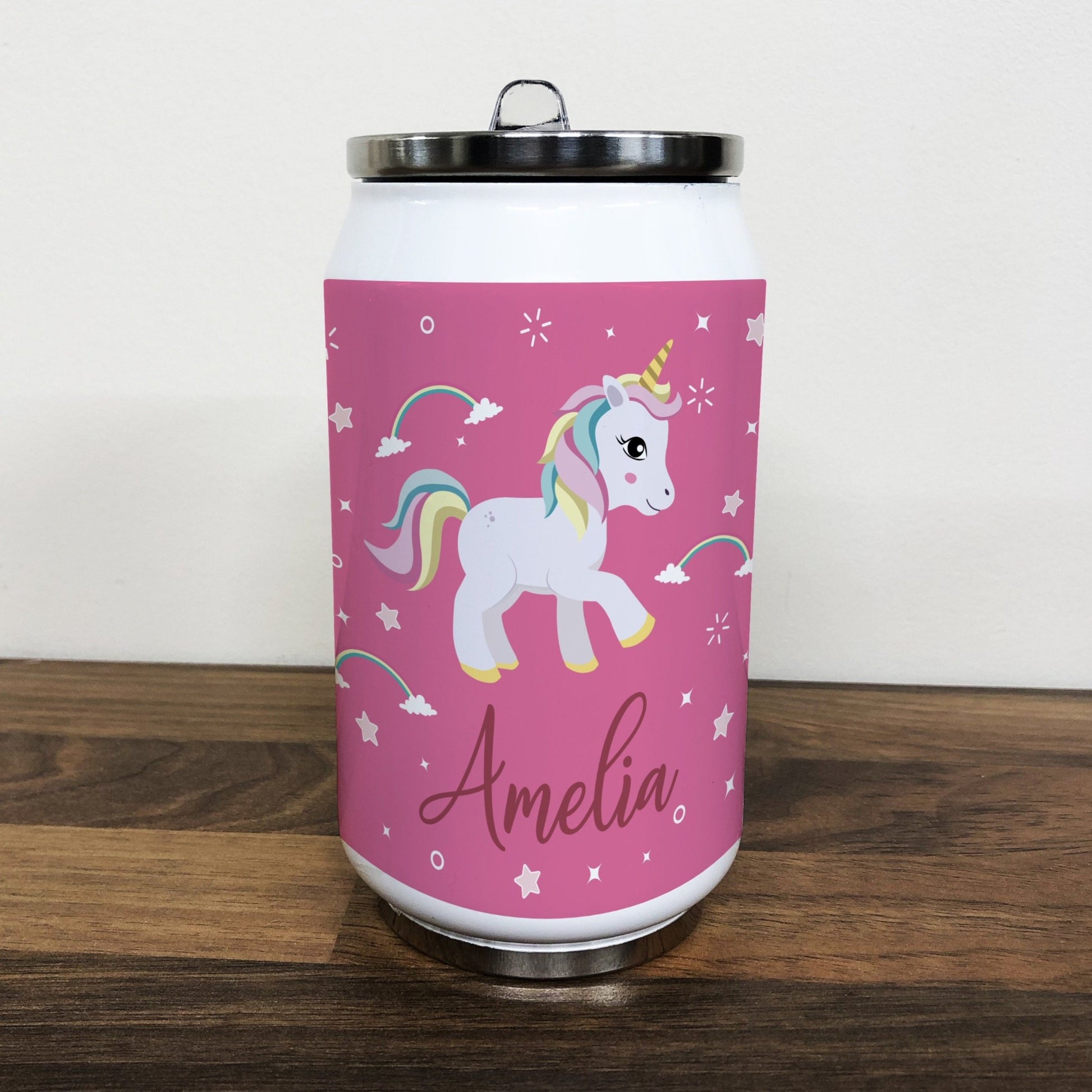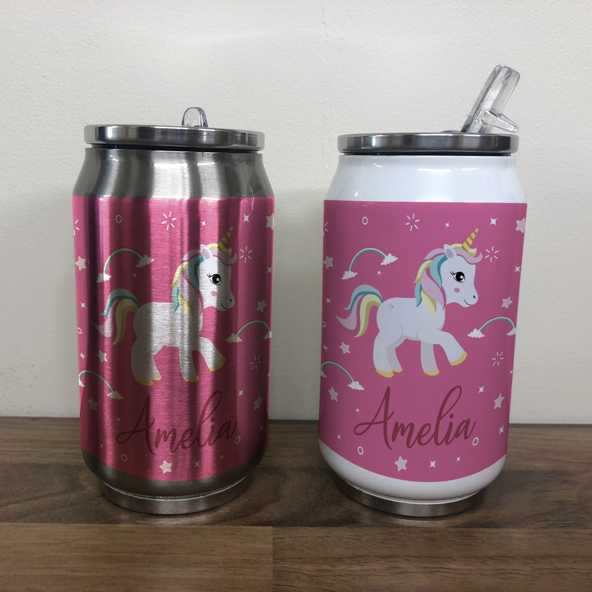 Personalised Children's Pink Unicorn 280ml Stainless Steel Drinks Can