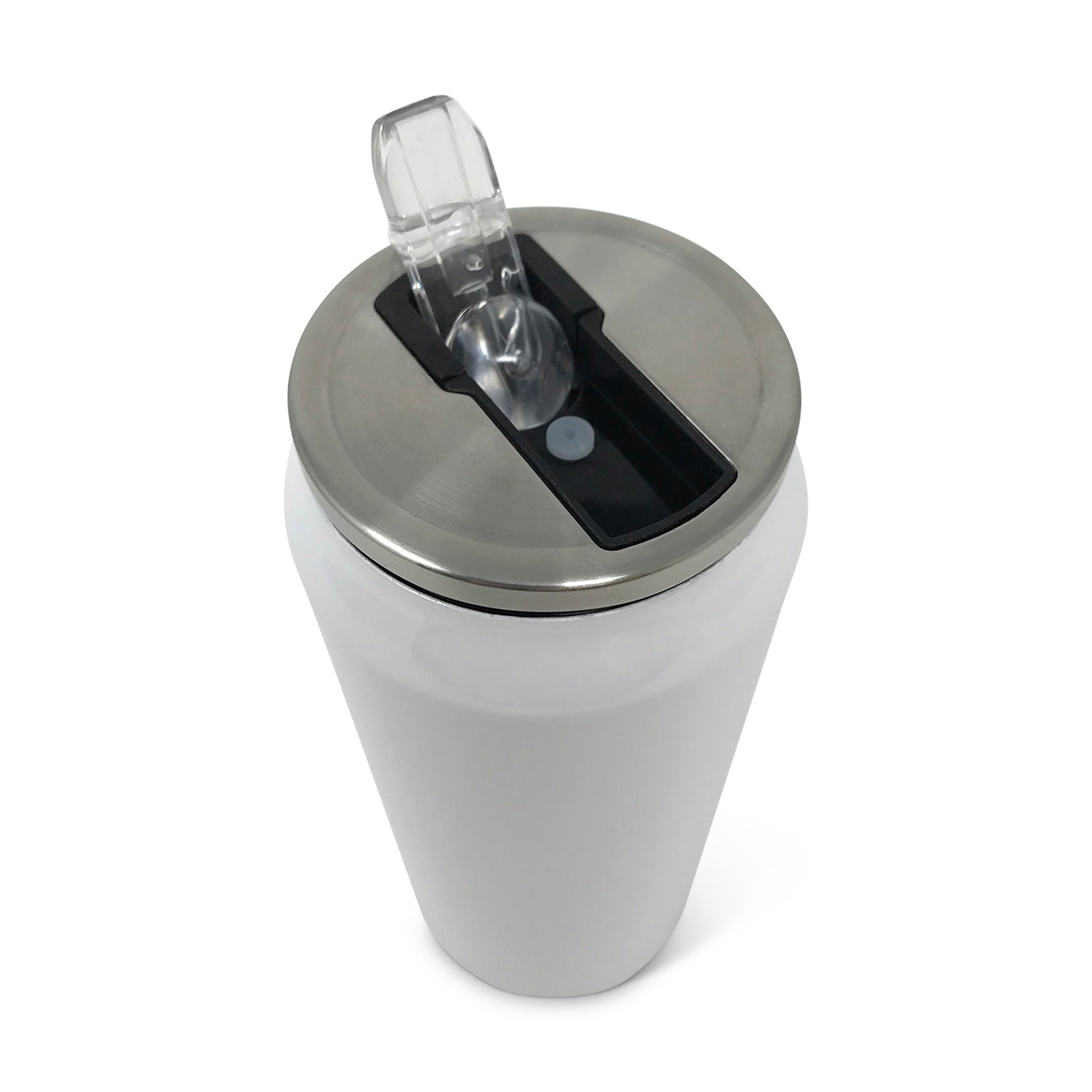 Our drinks cans are hand wash only, with screw top lid and flip up plastic straw. Great for kids on the go!