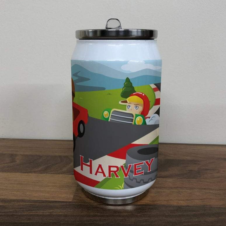 Personalised Children's Race Car 280ml Stainless Steel Drinks Can