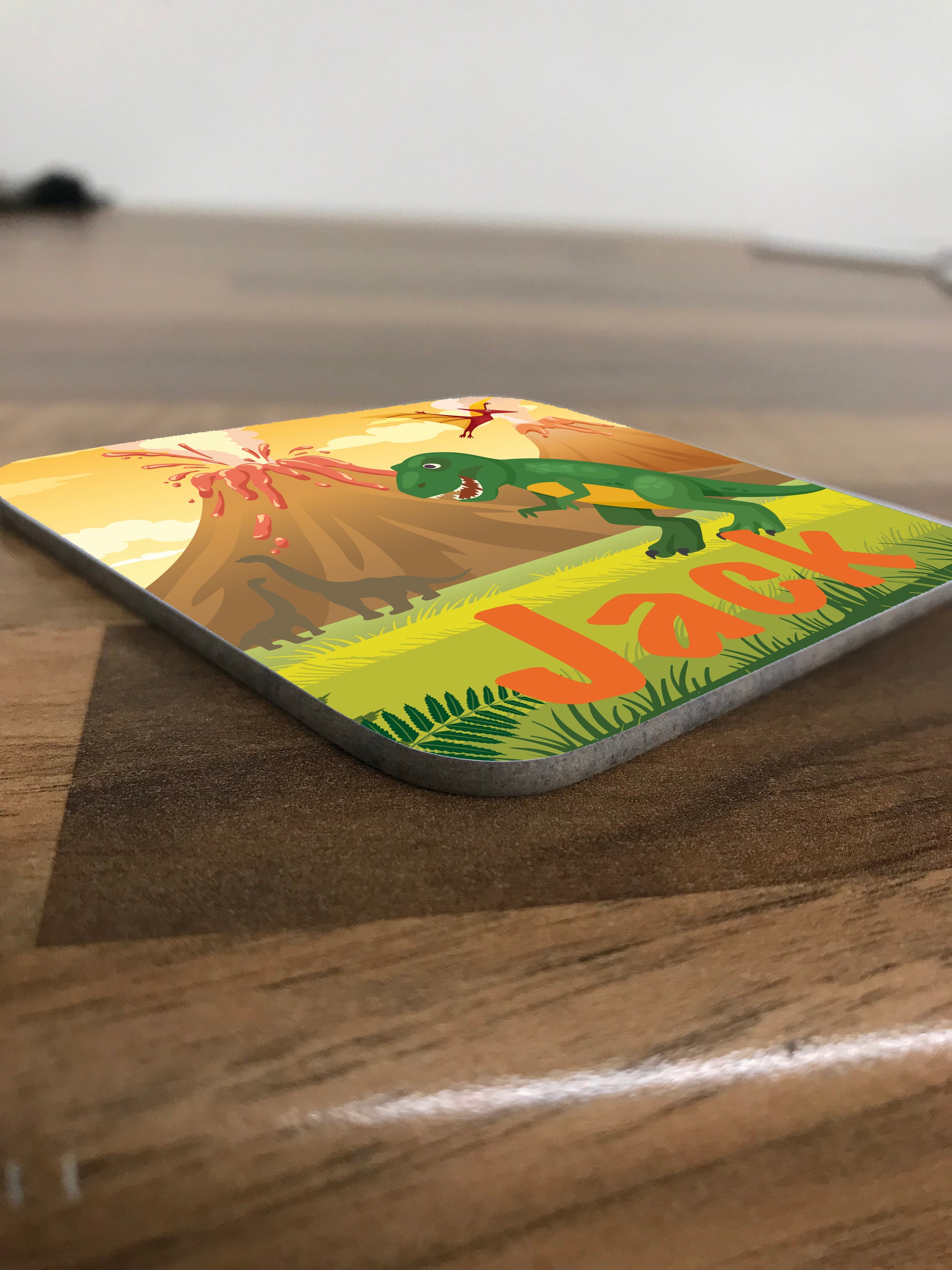 Fantastic colourful dinosaur design. Our personalised coasters make excellent fun gifts ideal for family and friends.