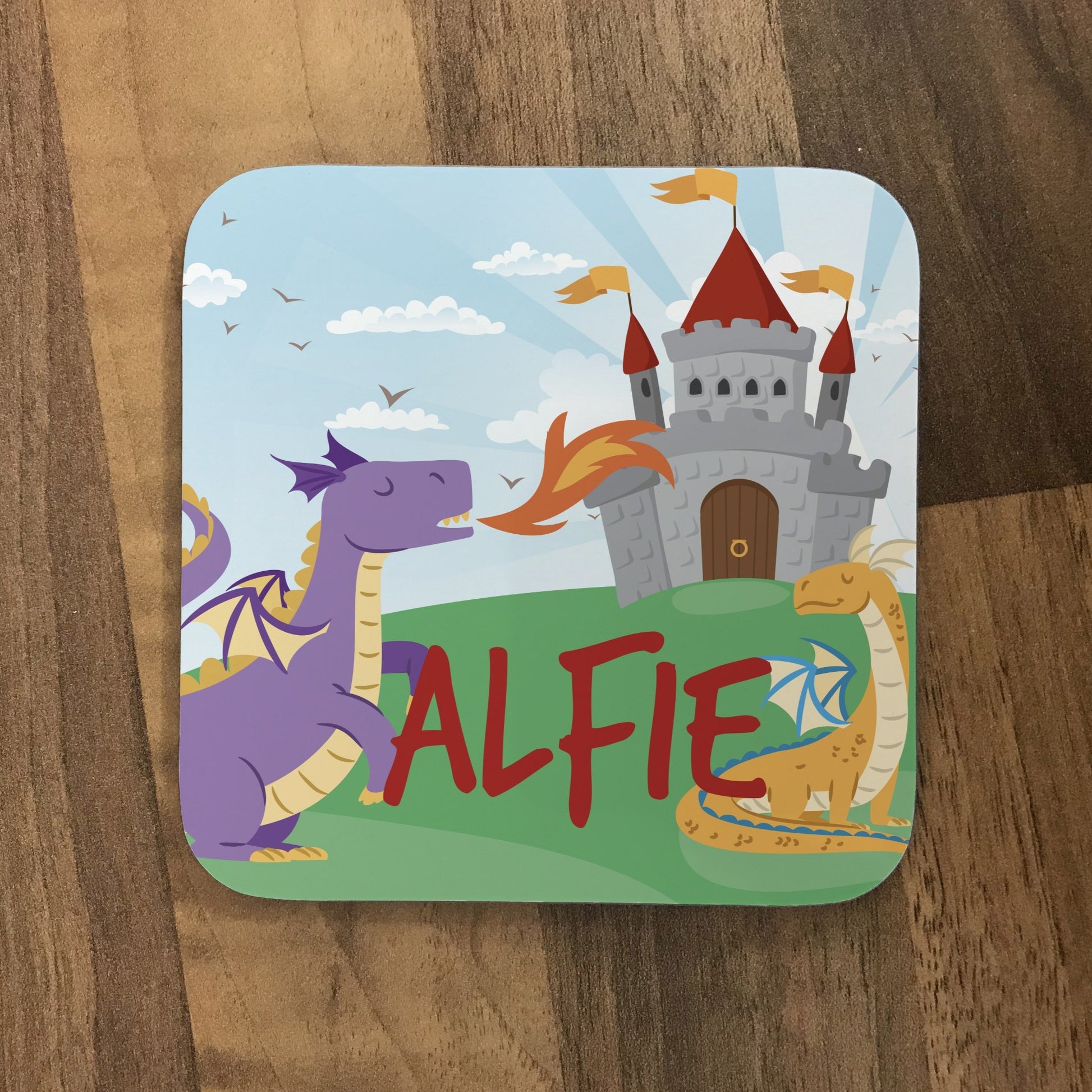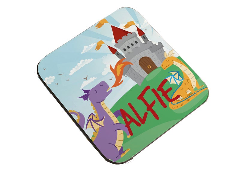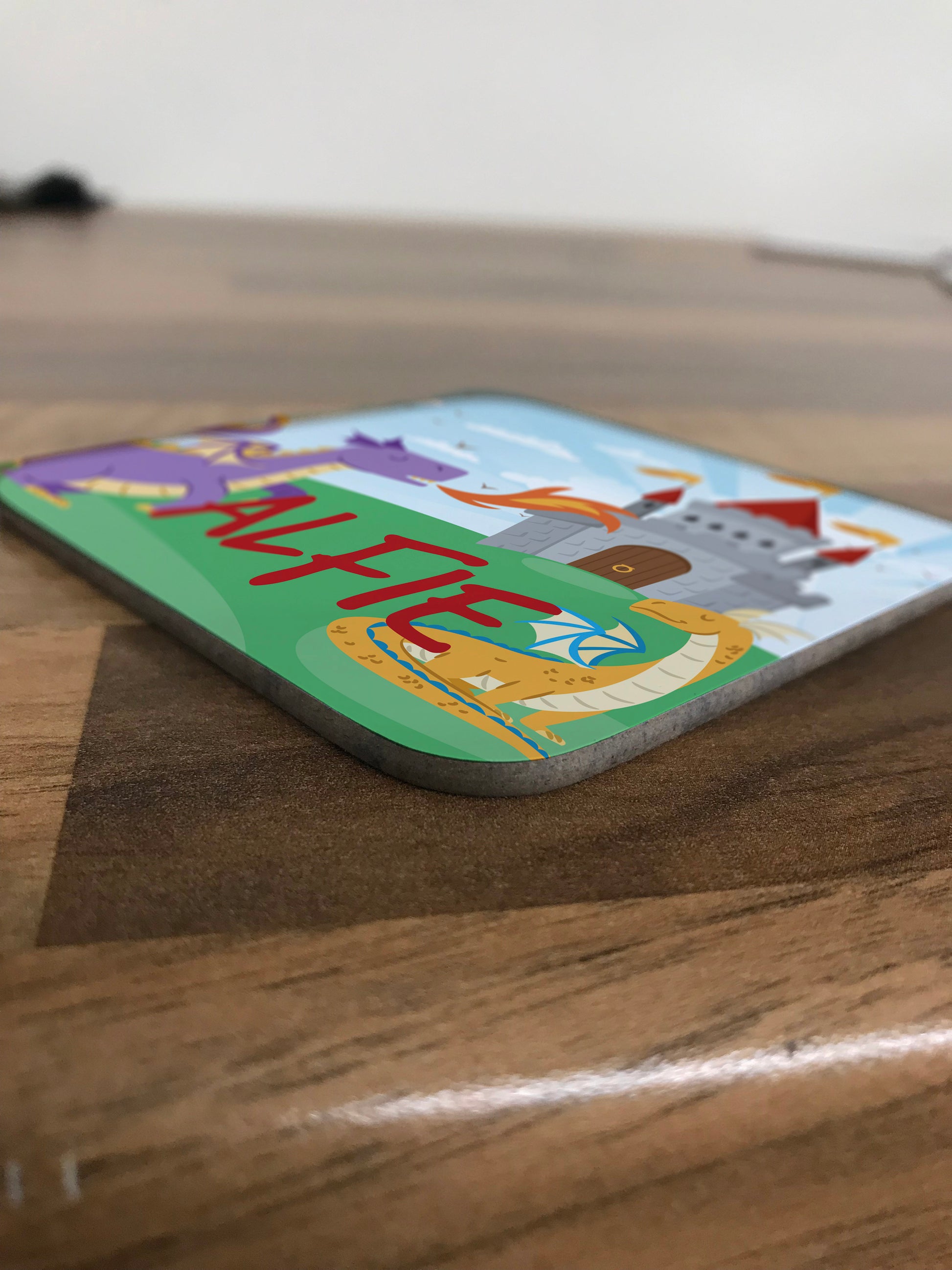 Fantastic colourful Dragon fairytale design. Our personalised coasters make excellent fun gifts ideal for family and friends.