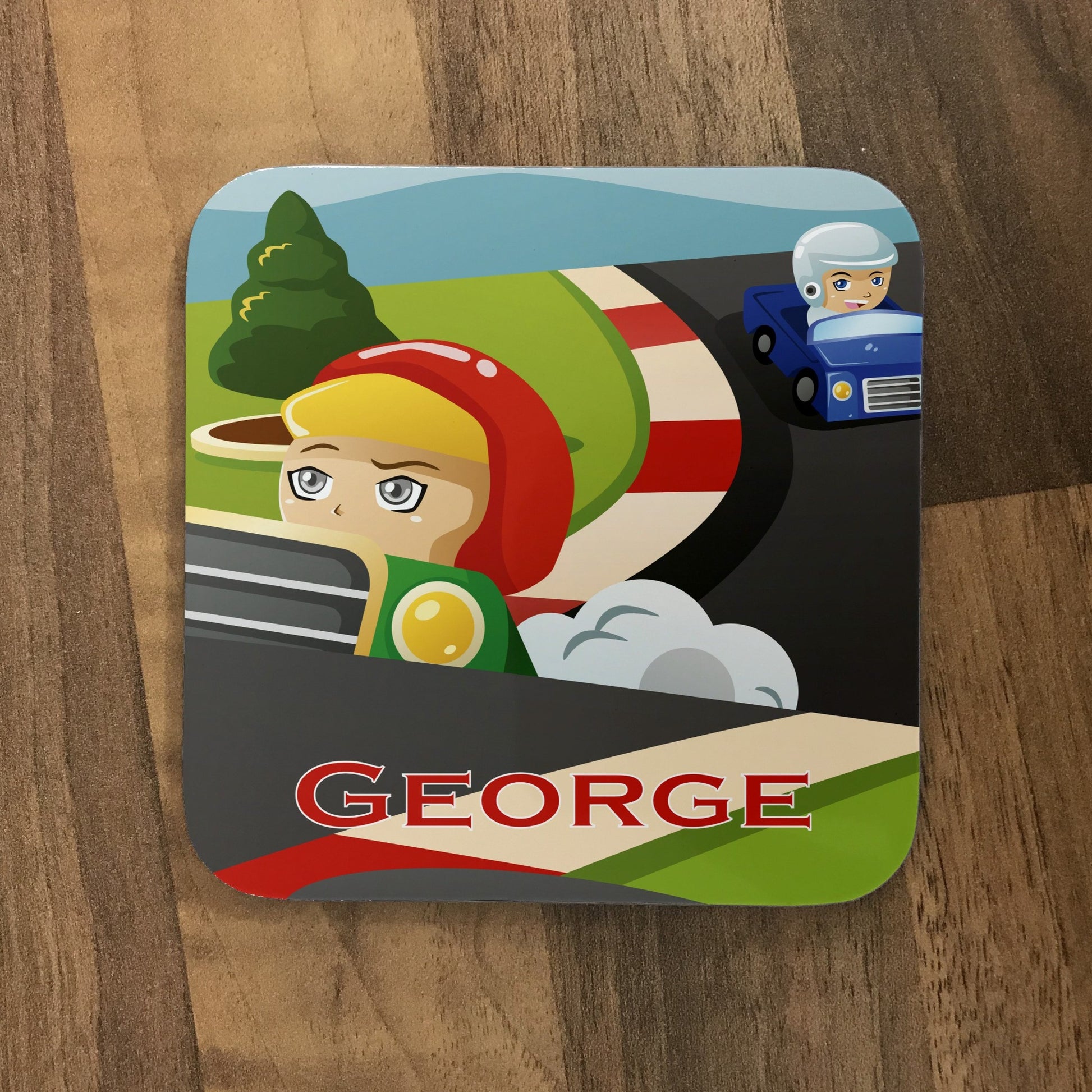 Fantastic colourful racecar design. Our personalised coasters make excellent fun gifts ideal for family and friends.