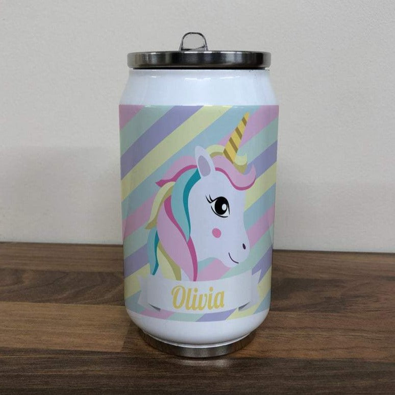 Personalised Children's Striped Unicorn 280ml Stainless Steel Drinks Can