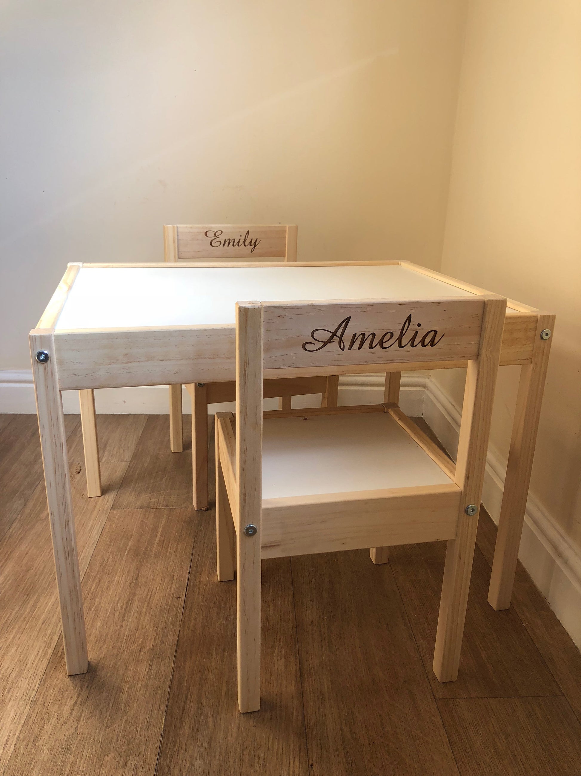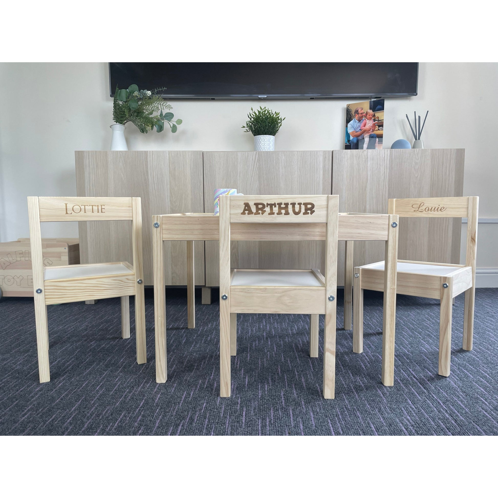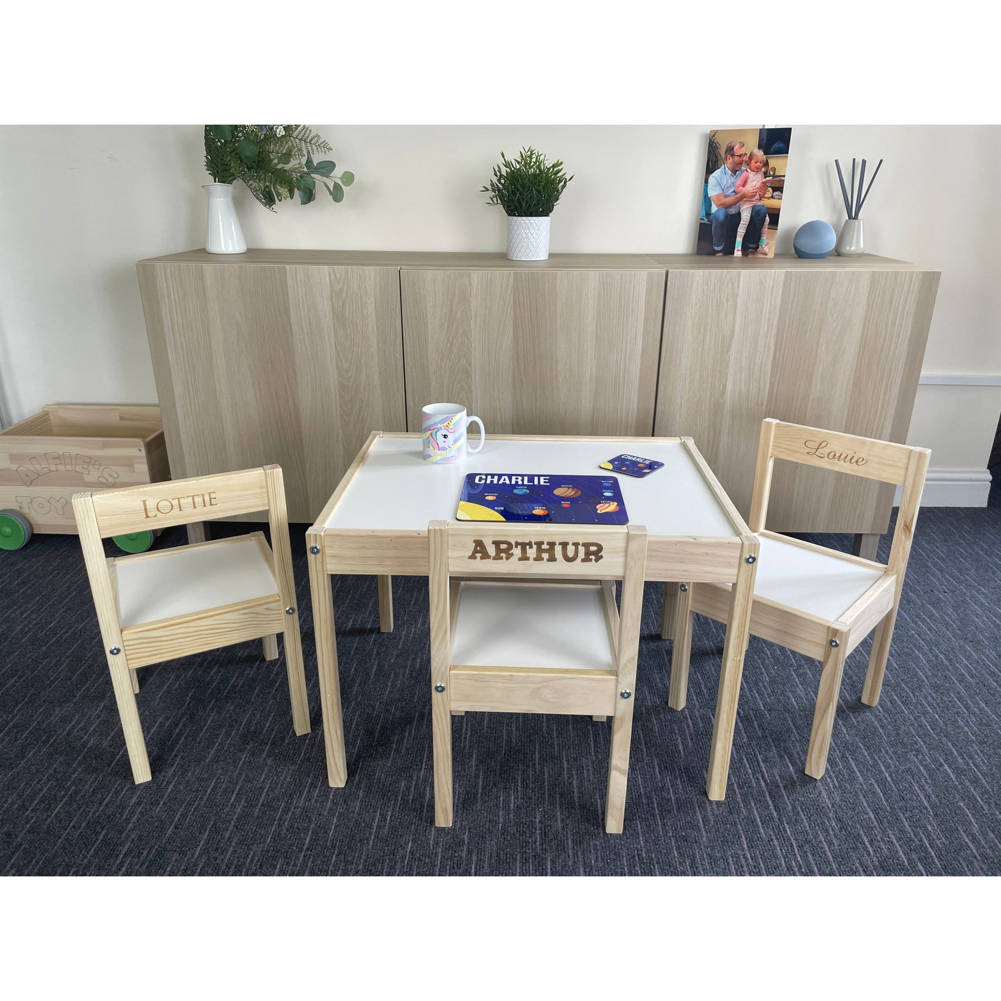 Personalised Children's Table and 3 Chairs - Set includes 1 Table & 3 Chairs with laser engraving of your names.