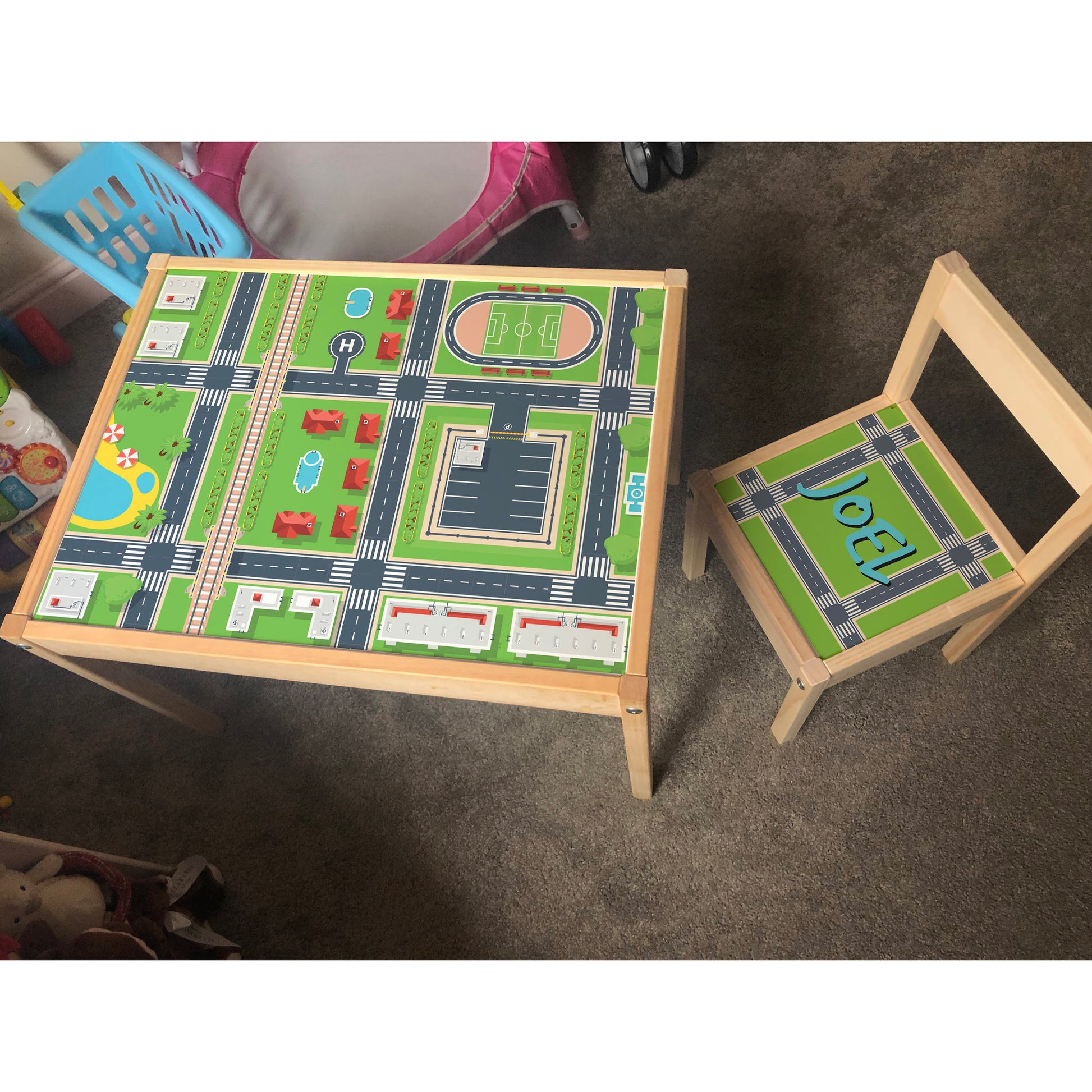 Personalised Children's Table and 1 Chair Printed City Town Design