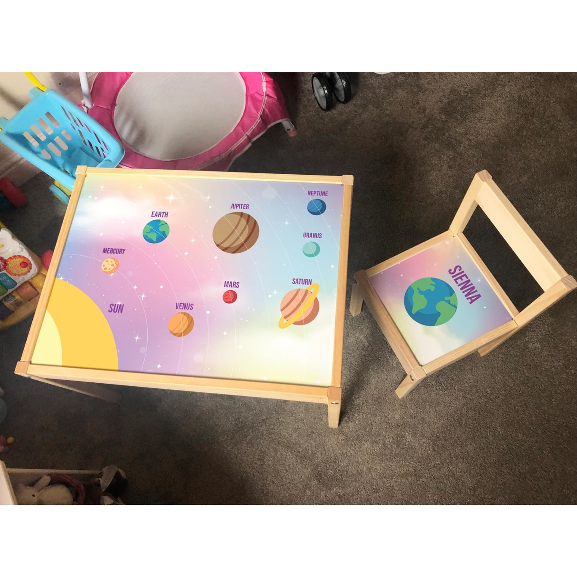 Personalised Children's Table and 1 Chair Printed Pink Planets Design