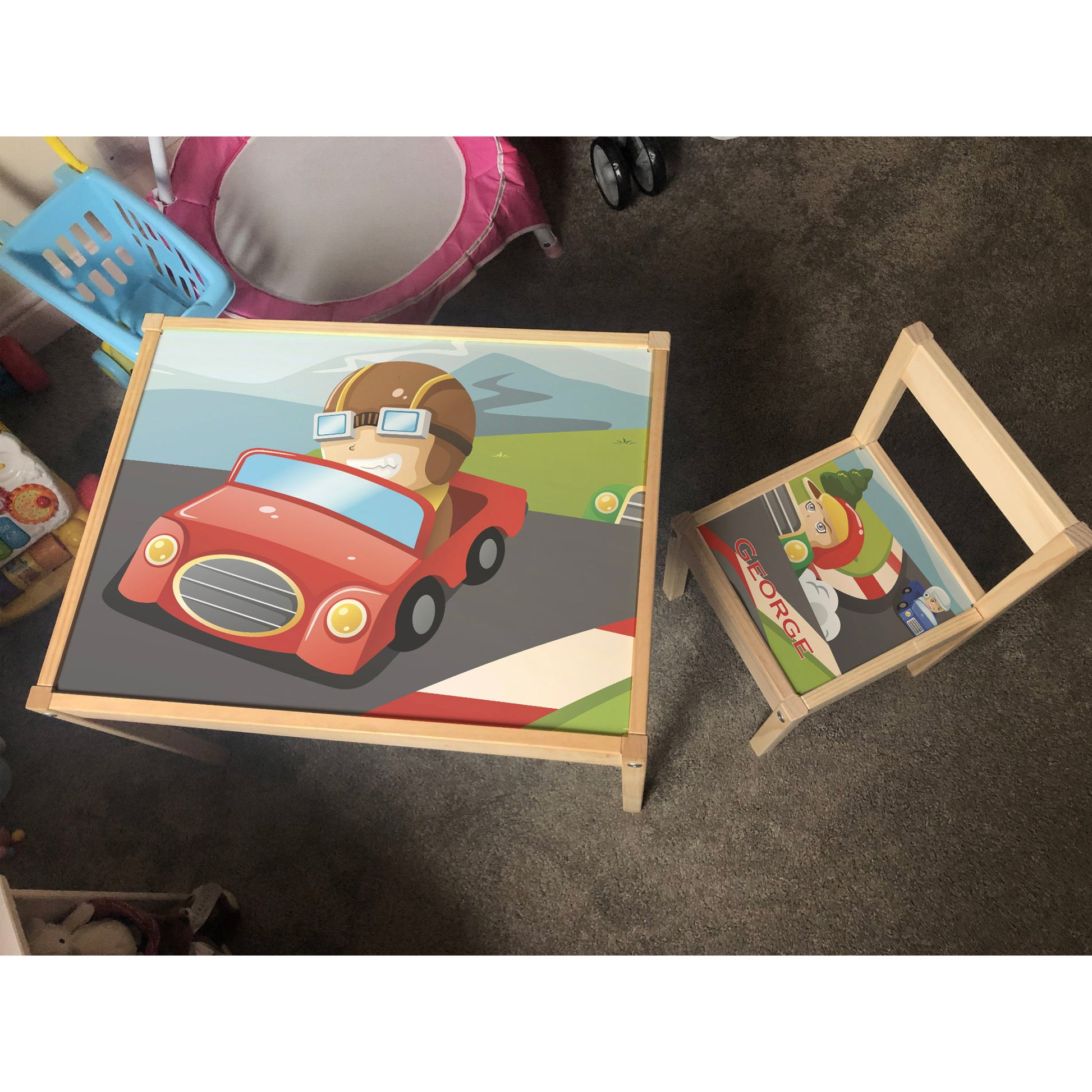 Personalised Children's Table and 1 Chair Printed Race Car Design