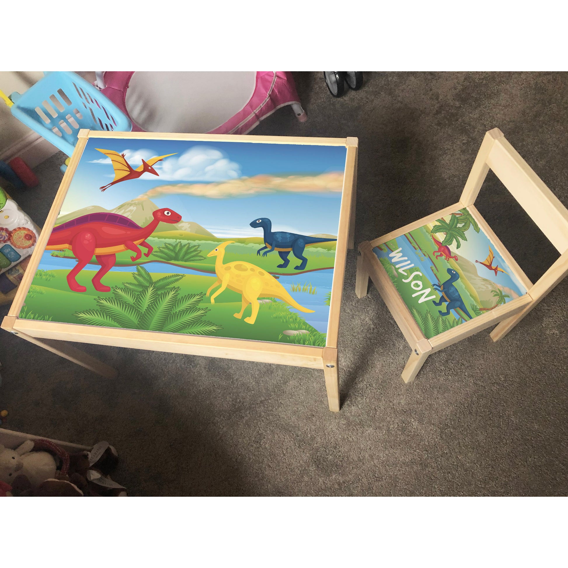 Personalised Children's Table and 1 Chair STICKER Dinosaur Landscape Design