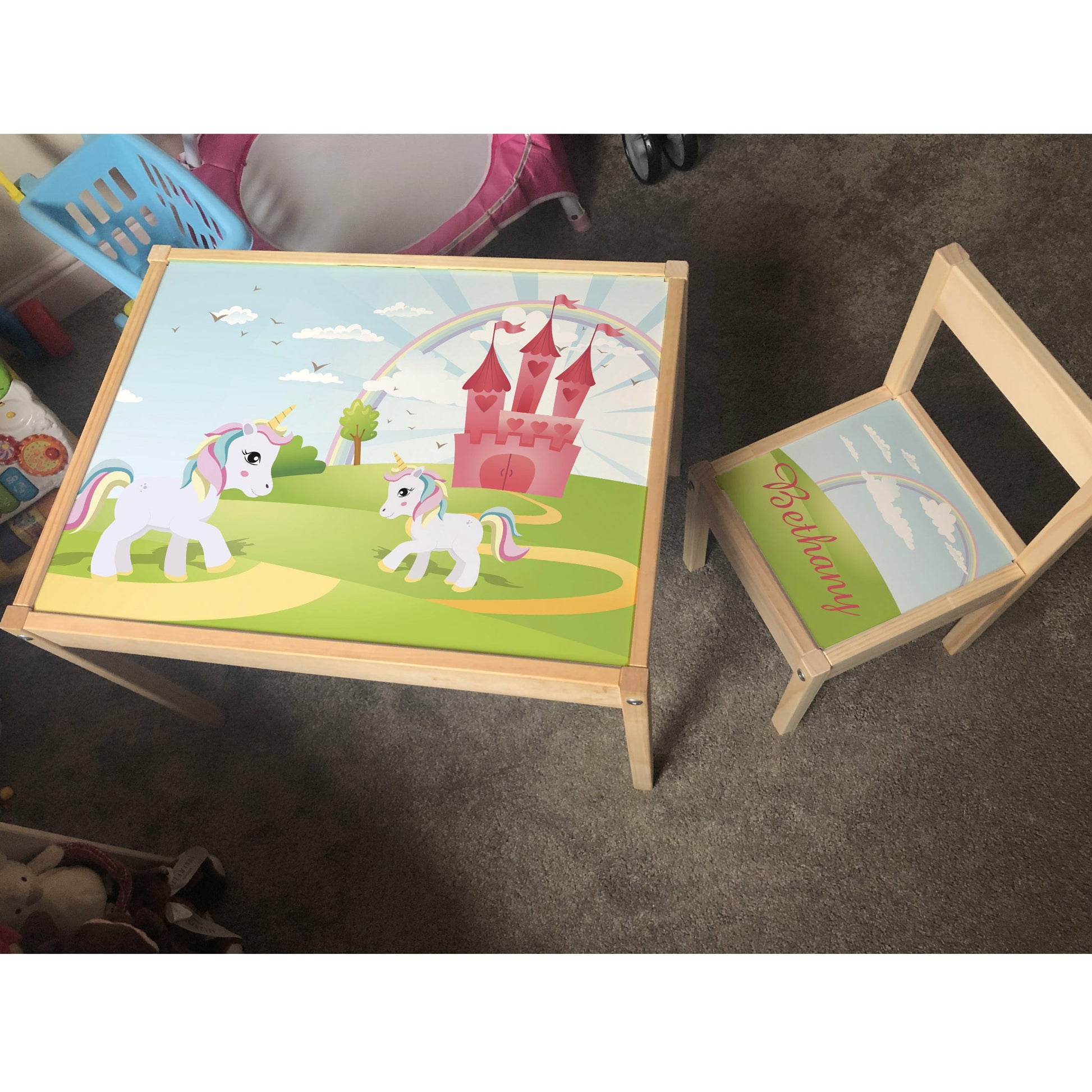 Personalised Children's Table and 1 Chair STICKER Unicorn Fairytale Design