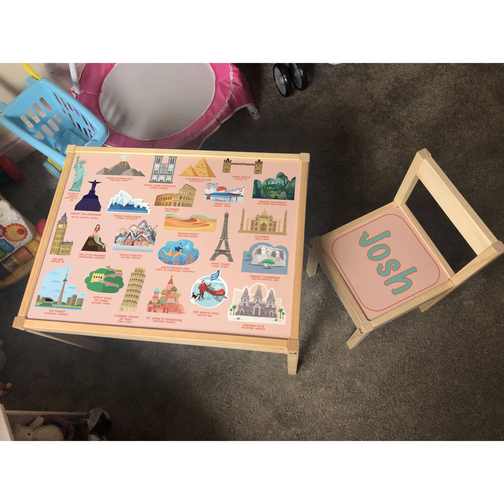 Personalised Children's Table and 1 Chair STICKER World Landmarks Design